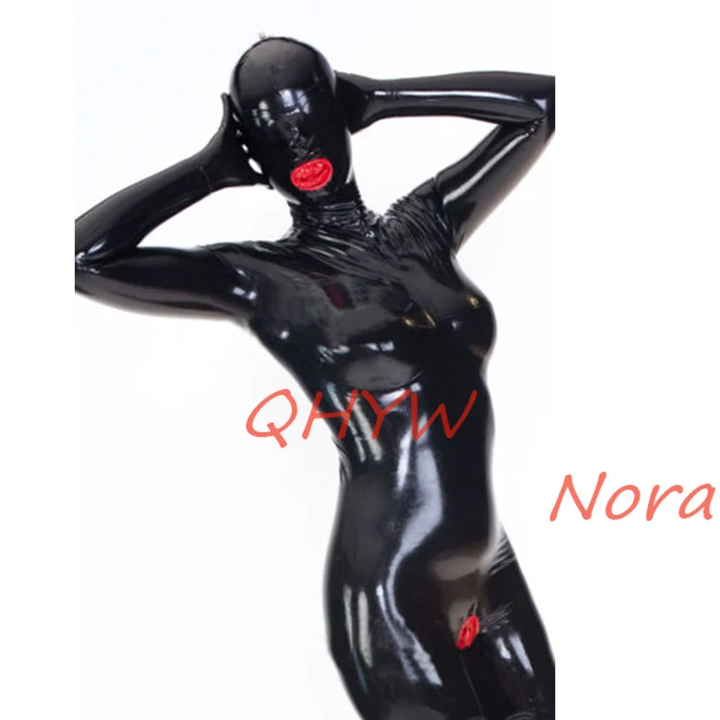 Сексуальный женский комбинезон из натурального латекса, женский комбинезон с капюшоном, красный вагинальный презерватив с перчатками и носками, молния сзади