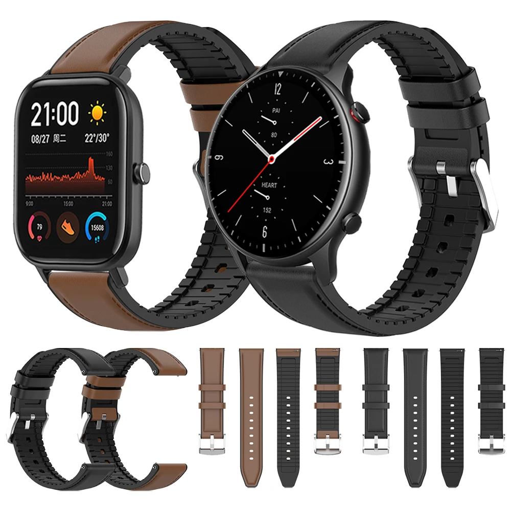 Кожаный силиконовый ремешок для Huami Amazfit GTR 2 GTS 2 ремешок для часов для Amazfit Stratos 3/Bip S/GTR 47 мм 42 мм ремешок для браслета