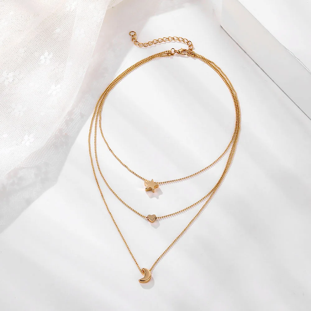 Винтажный ошейник IPARAM для женщин, богемный, звезда, луна, любовь, многослойный, ювелирные изделия, подарок, многослойное ожерелье с подвеской