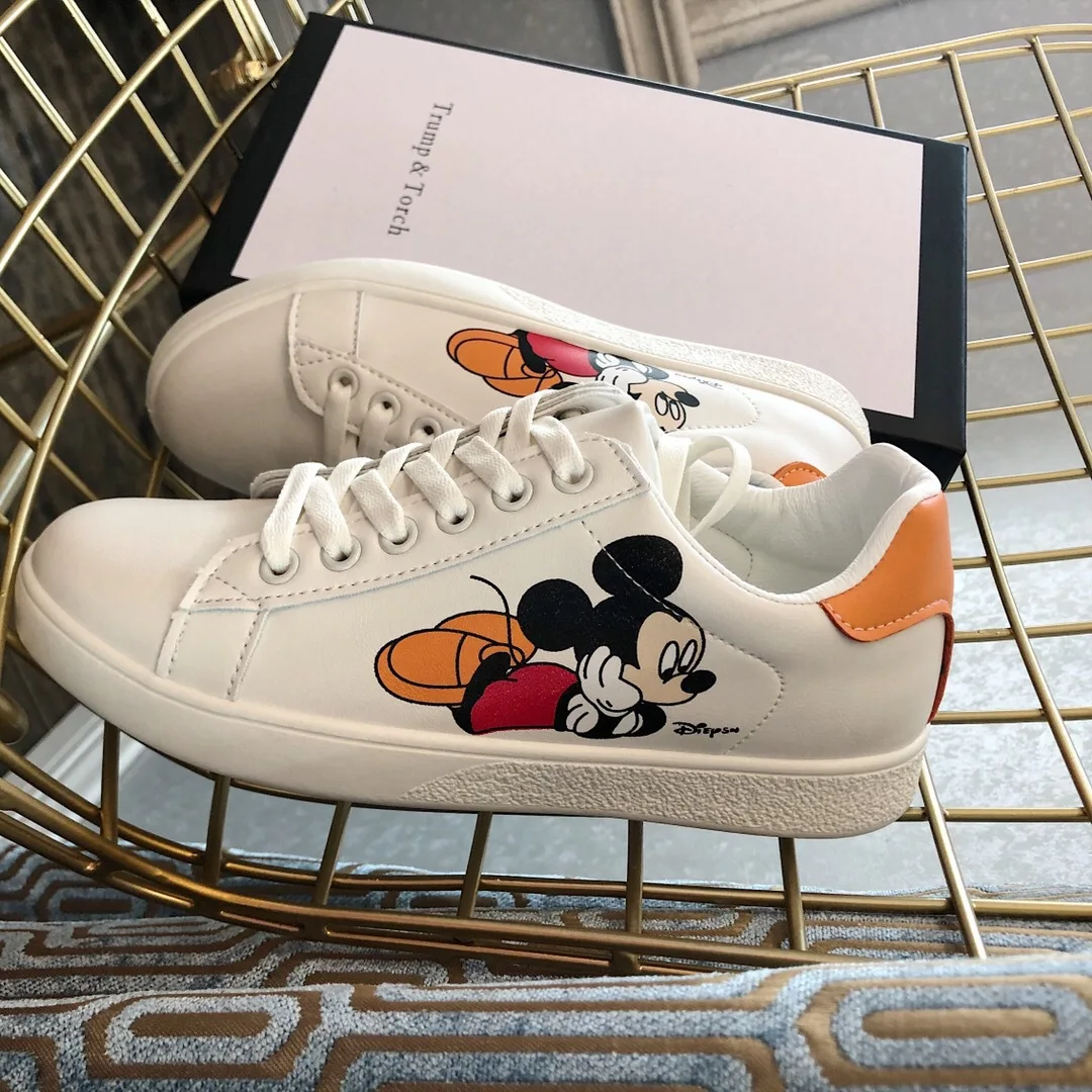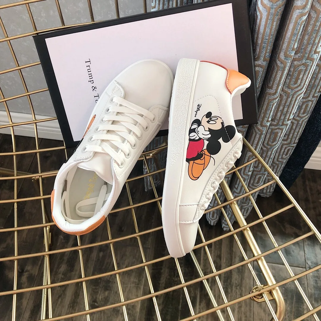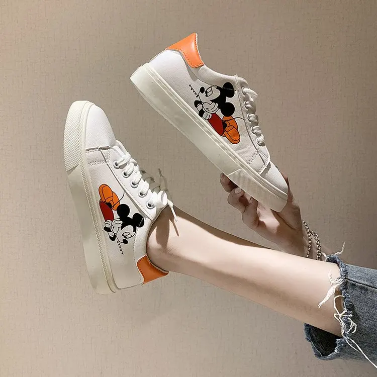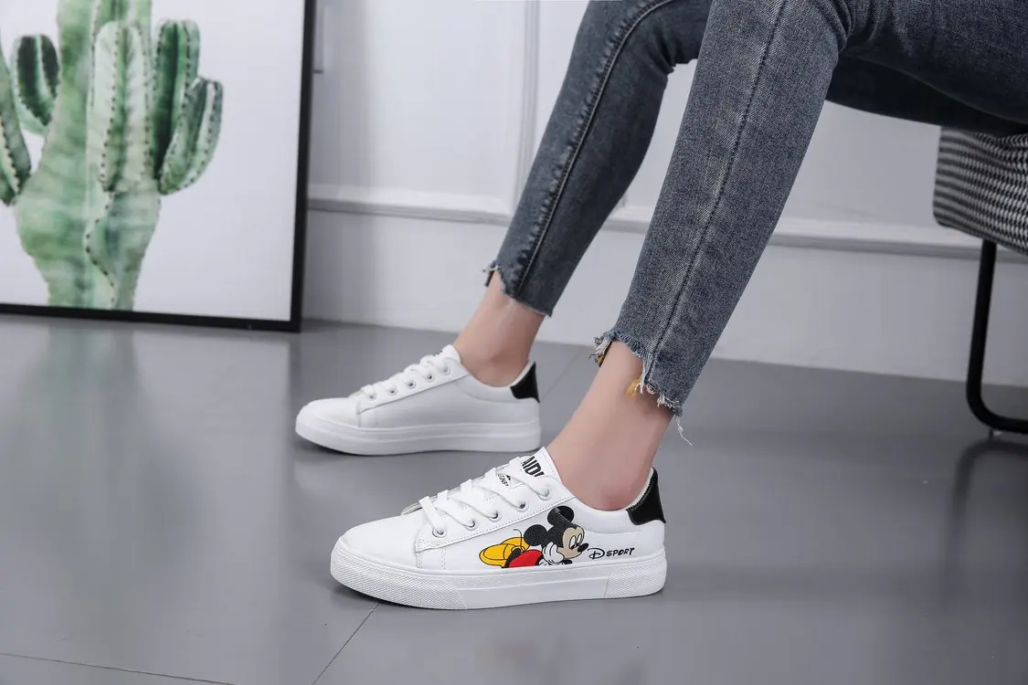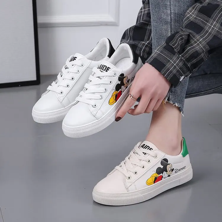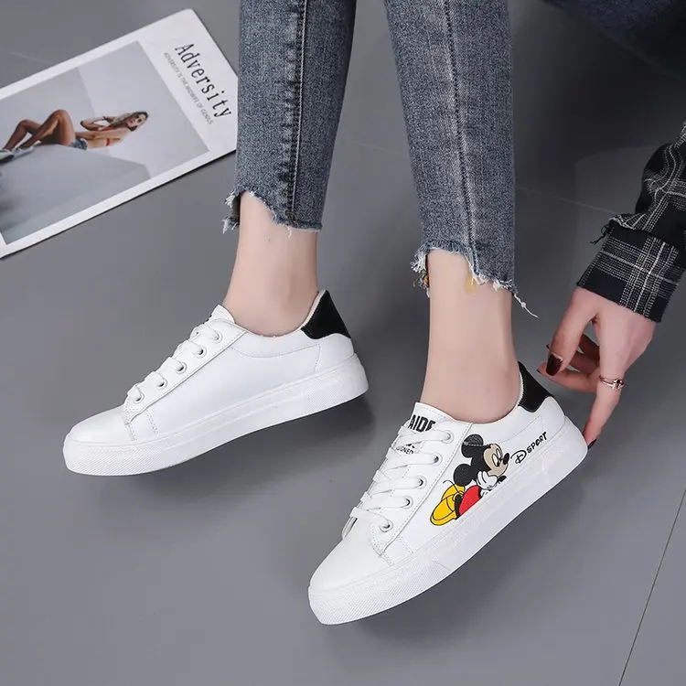 Белые туфли Disney Mickey, женские весенние тонкие туфли с Микки Маусом, корейские Дикие повседневные туфли студенческие, модная обувь для скейтборда