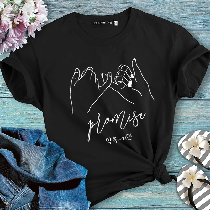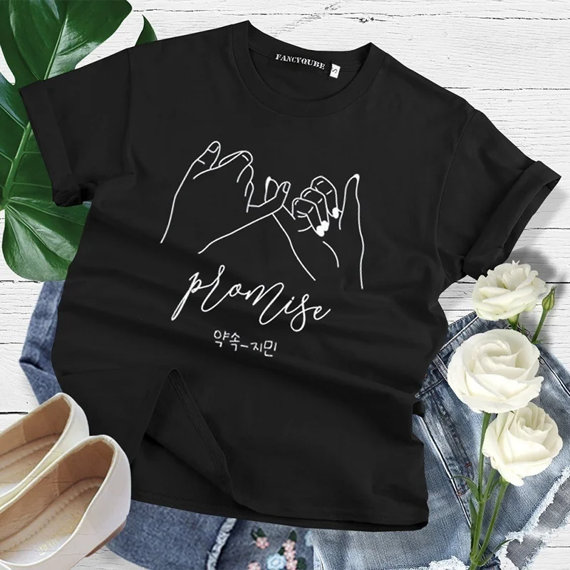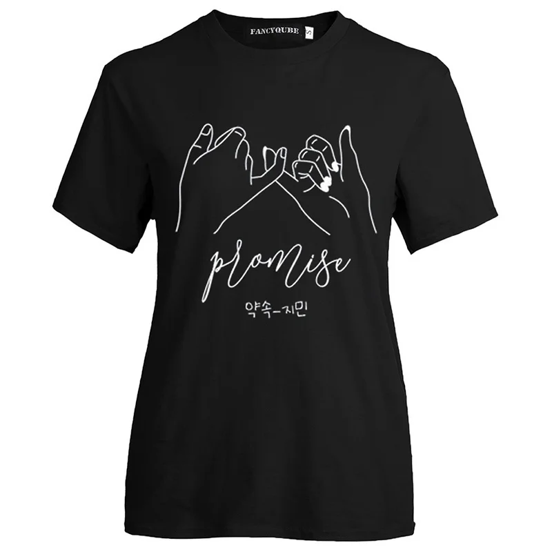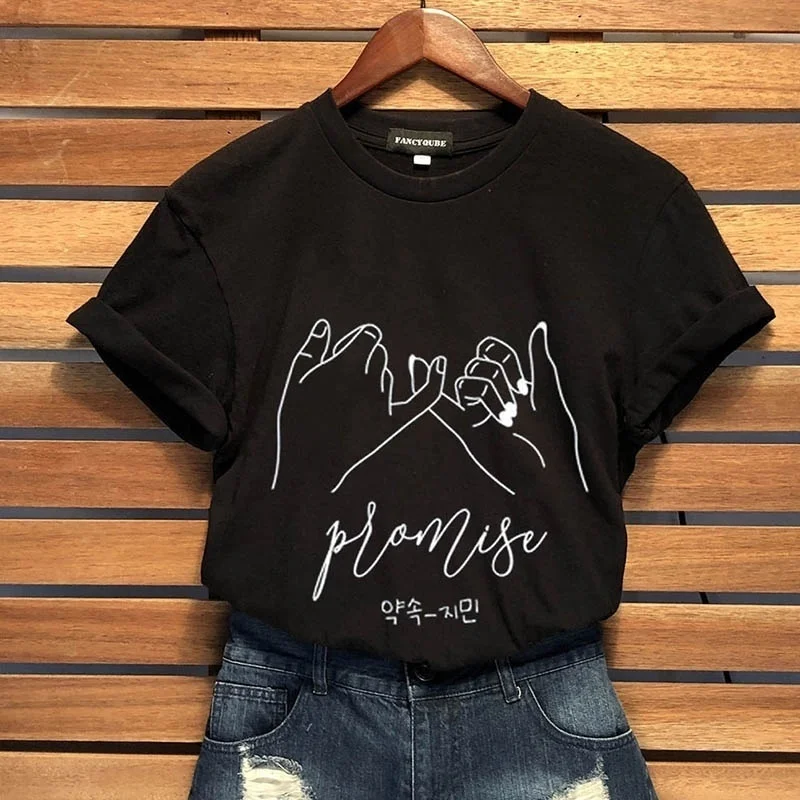 Kpop Jimin футболка с обещанием, летняя повседневная футболка с коротким рукавом и принтом, футболка, Топы, Harajuku размера плюс