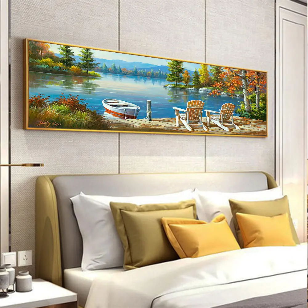 Сельская местность озера деревянный дом лодка Алмазная картина живо...