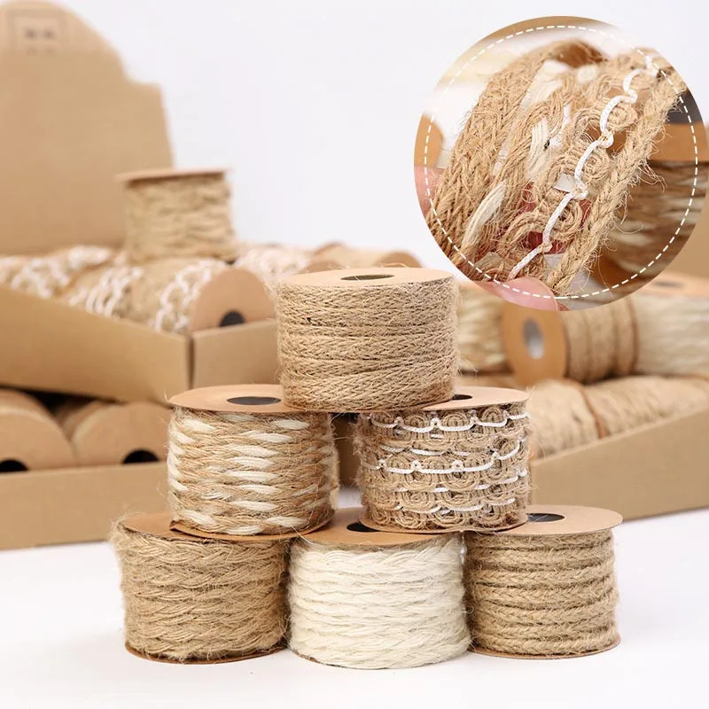 5 мрулон натуральный в декорированном мешковиной горшке пенька из натурального джута веревочные шнуры для вечерние свадебные украшения в виде шнуровки сделай сам в винтажном стиле; С бантом из ленты, подарок на Рождество, Декор