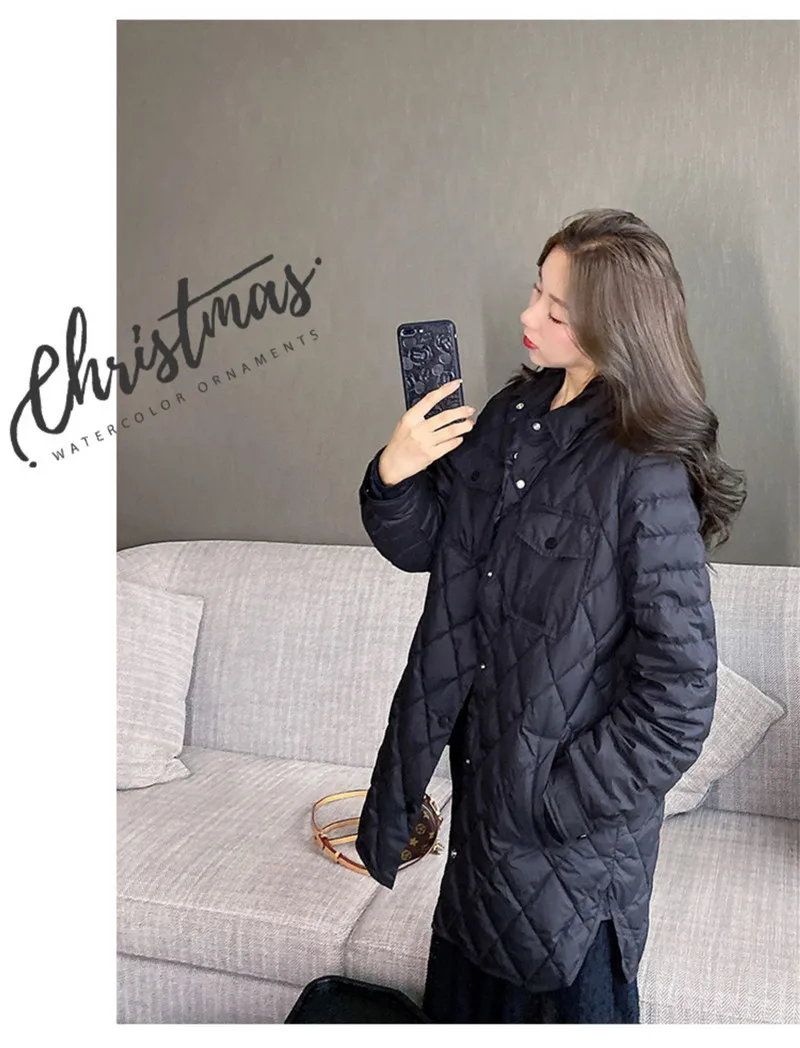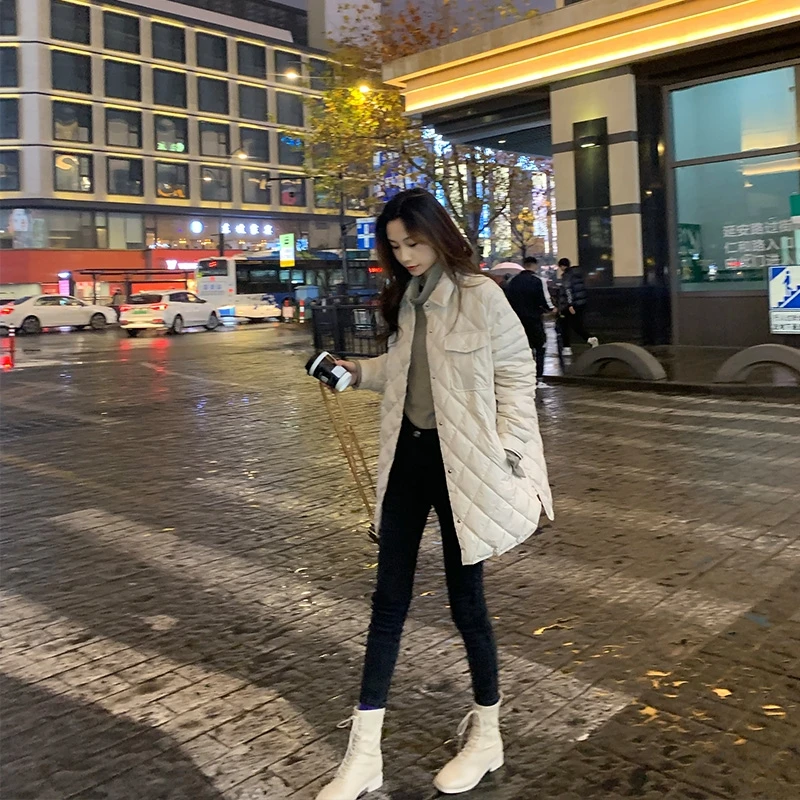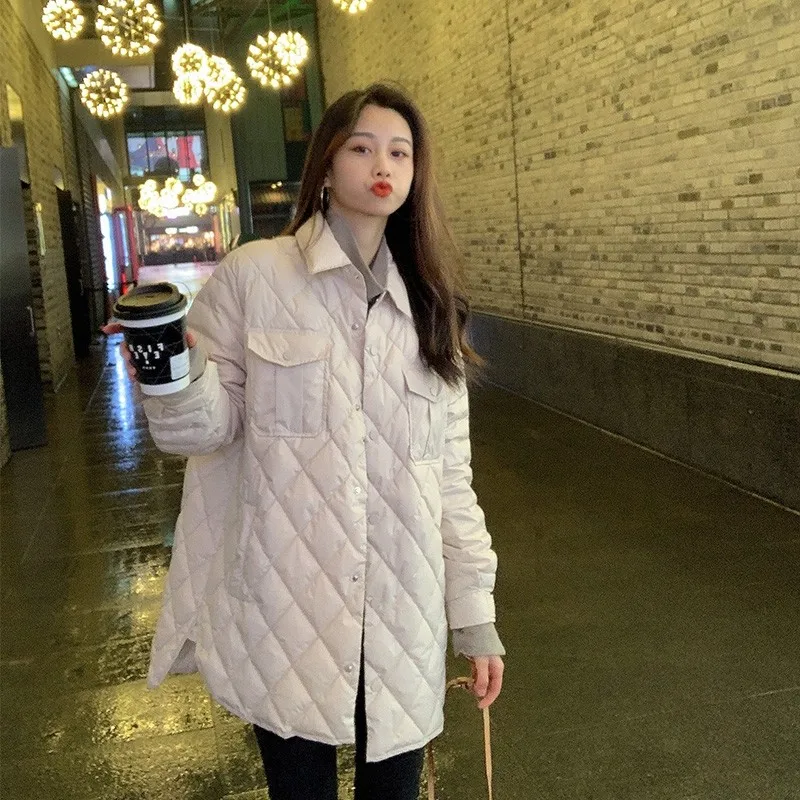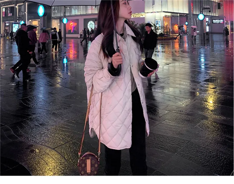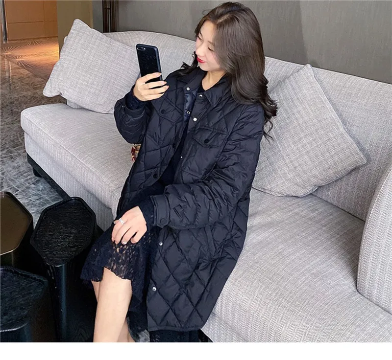 Женская ветрозащитная куртка Bella Philosophy, длинное Прямое пальто, повседневные женские парки с ромбовидным узором, верхняя одежда для зимы,