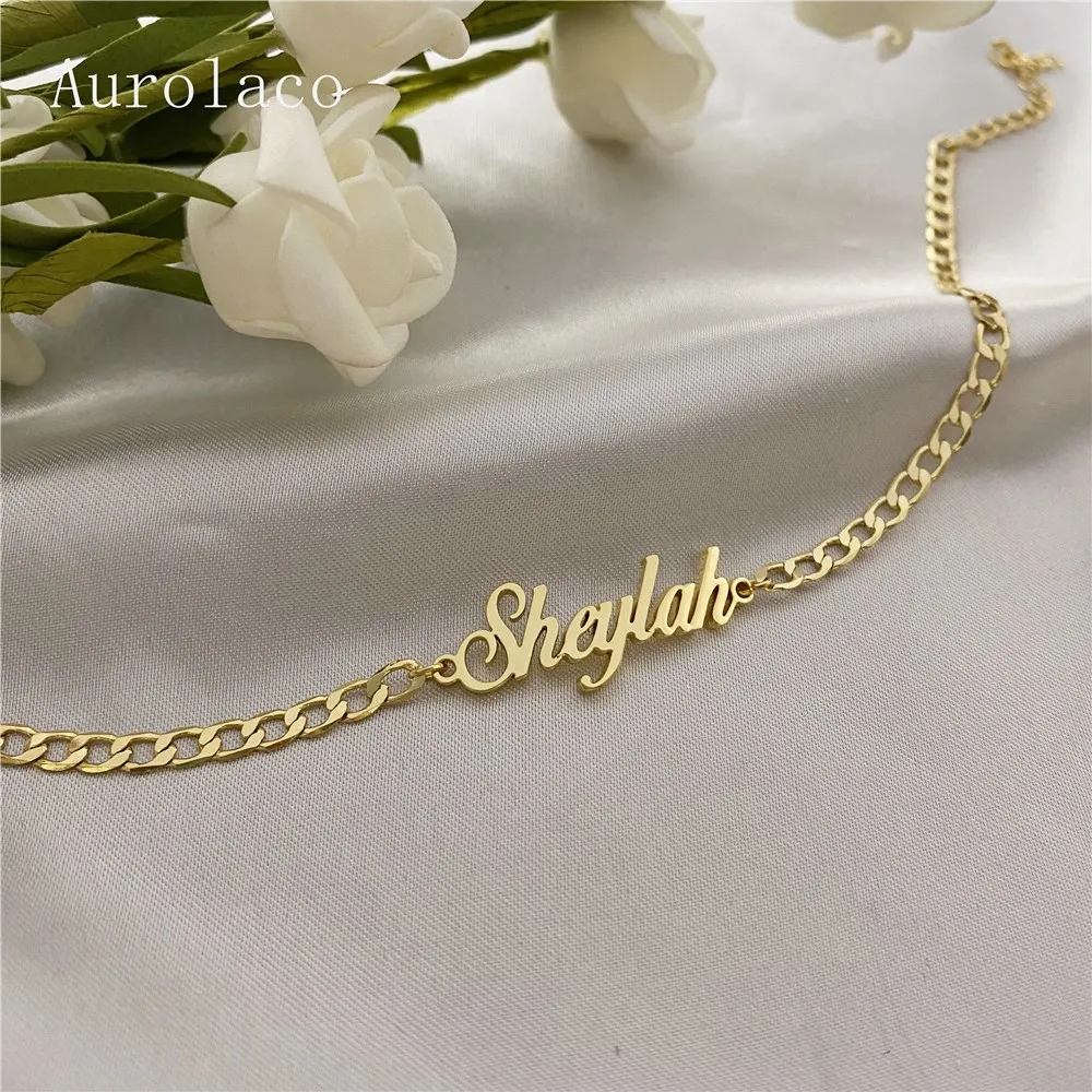 Ожерелье AurolaCo с именем на заказ, кубинская цепочка из нержавеющ...