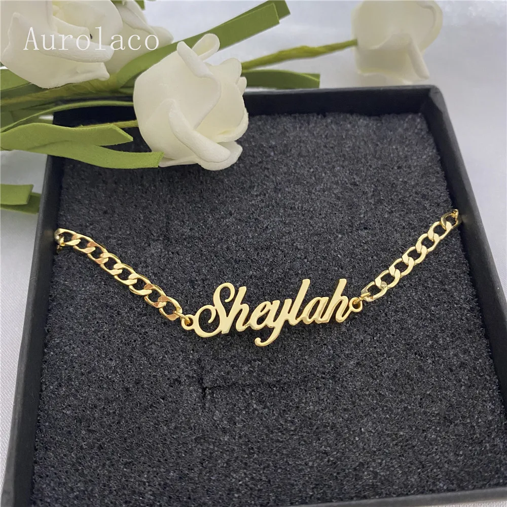 AurolaCo именной браслет на заказ змеиная цепочка браслет из нержав...