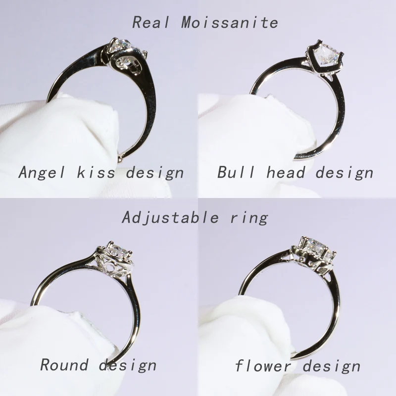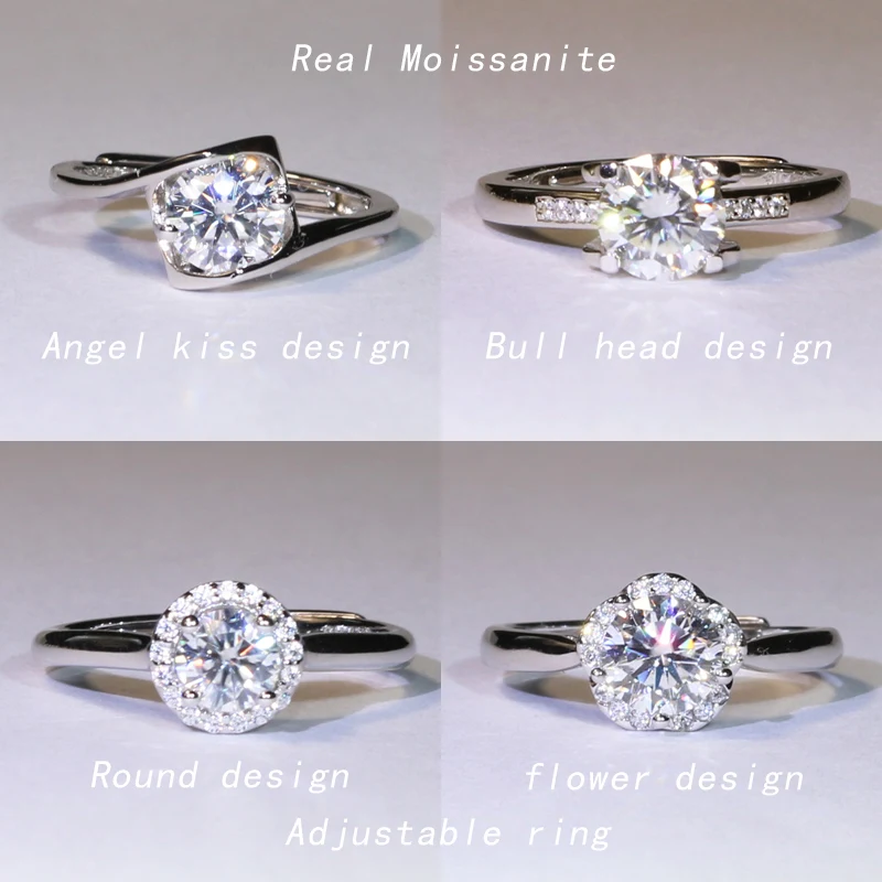 Кольца из 100% настоящего муассанита, регулируемое кольцо с бриллиа...