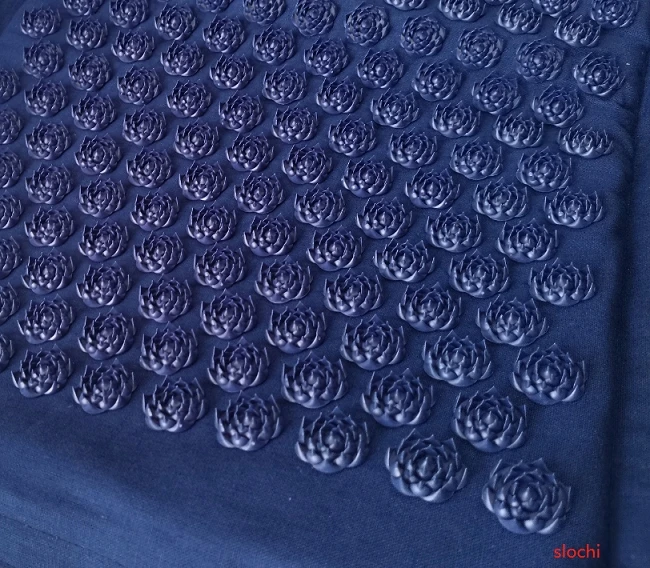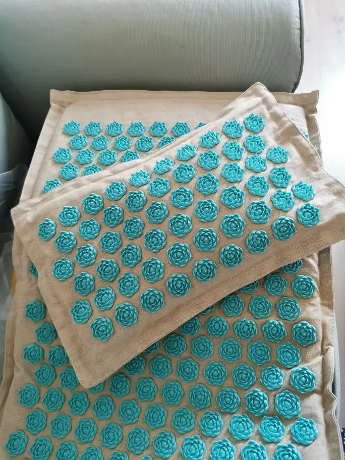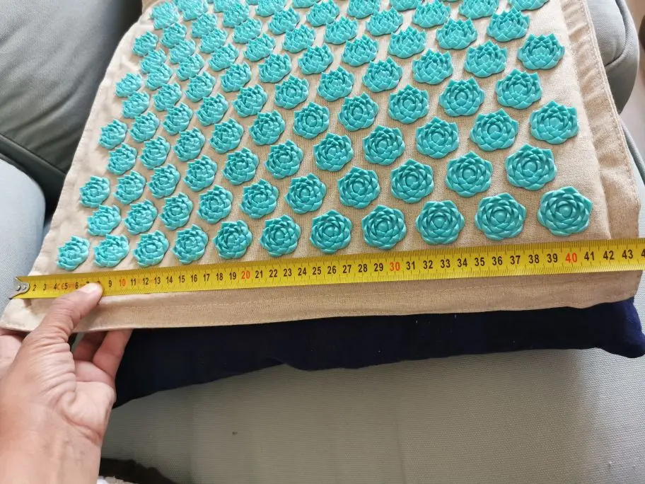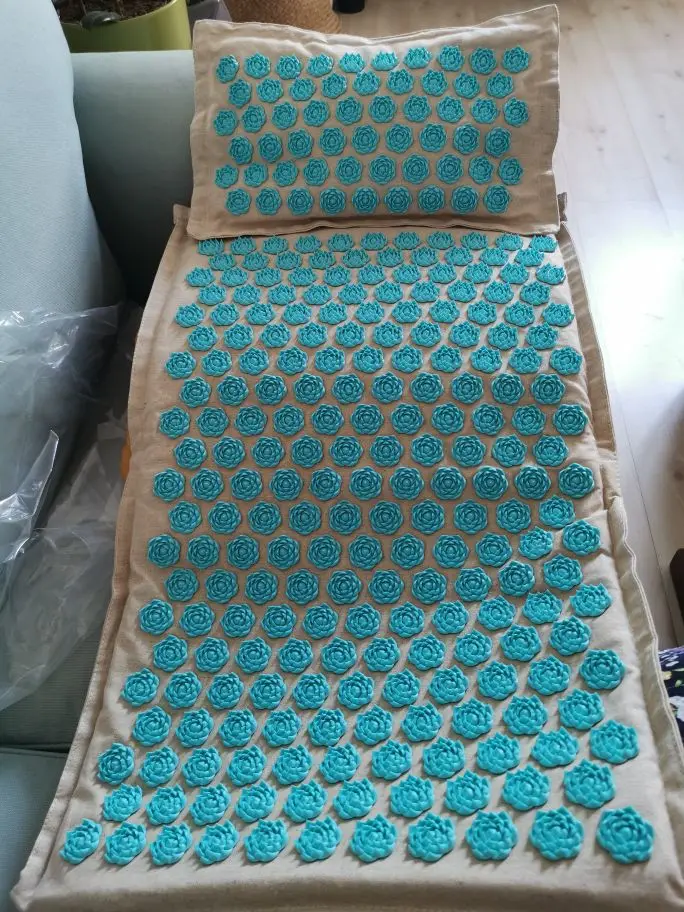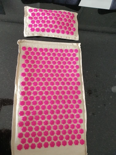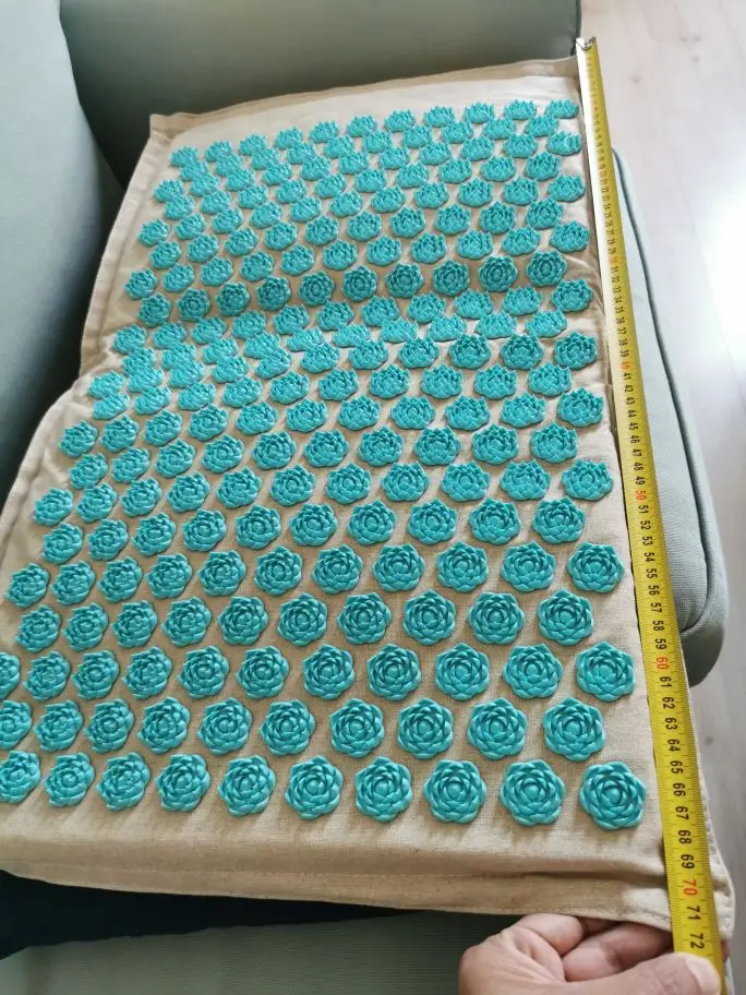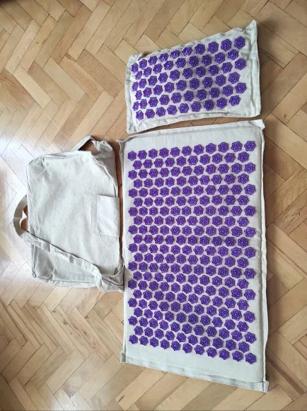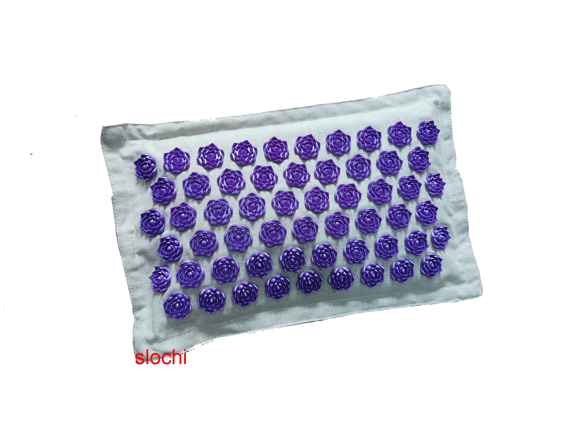 Цвет purple brown не особо соответствует фото продавца - в жизни он очень тёмный, грязноватый. Не советую его брать. В остальном товар хороший, материалы как в описании: лён, кокосовая койра, гречка в подушке. Лотосы острые. Коврик пришёл на кассу Пятёрочки в Красногорск за неделю.