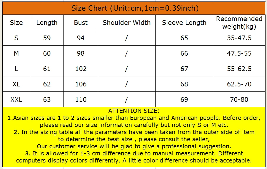 Внимание Размер:1. Азиатские размеры на 1-2 размера меньше, чем европейские и американские. Перед заказом,Пожалуйста, внимательно прочитайте нашу информацию о размерах, но не только S или M и т. д.2. В таблице размеров все параметры были взяты с внешней стороны изделияЧтобы определить лучший размер, пожалуйста, обратитесь к продавцу,Наша служба поддержки клиентов будет рада предоставить профессиональное предложение.3. Допускается разница в 1-3 см из-за ручного измерения. РазныеКомпьютеры отображают цвета по-разному. Возможна небольшая разница в цвете.