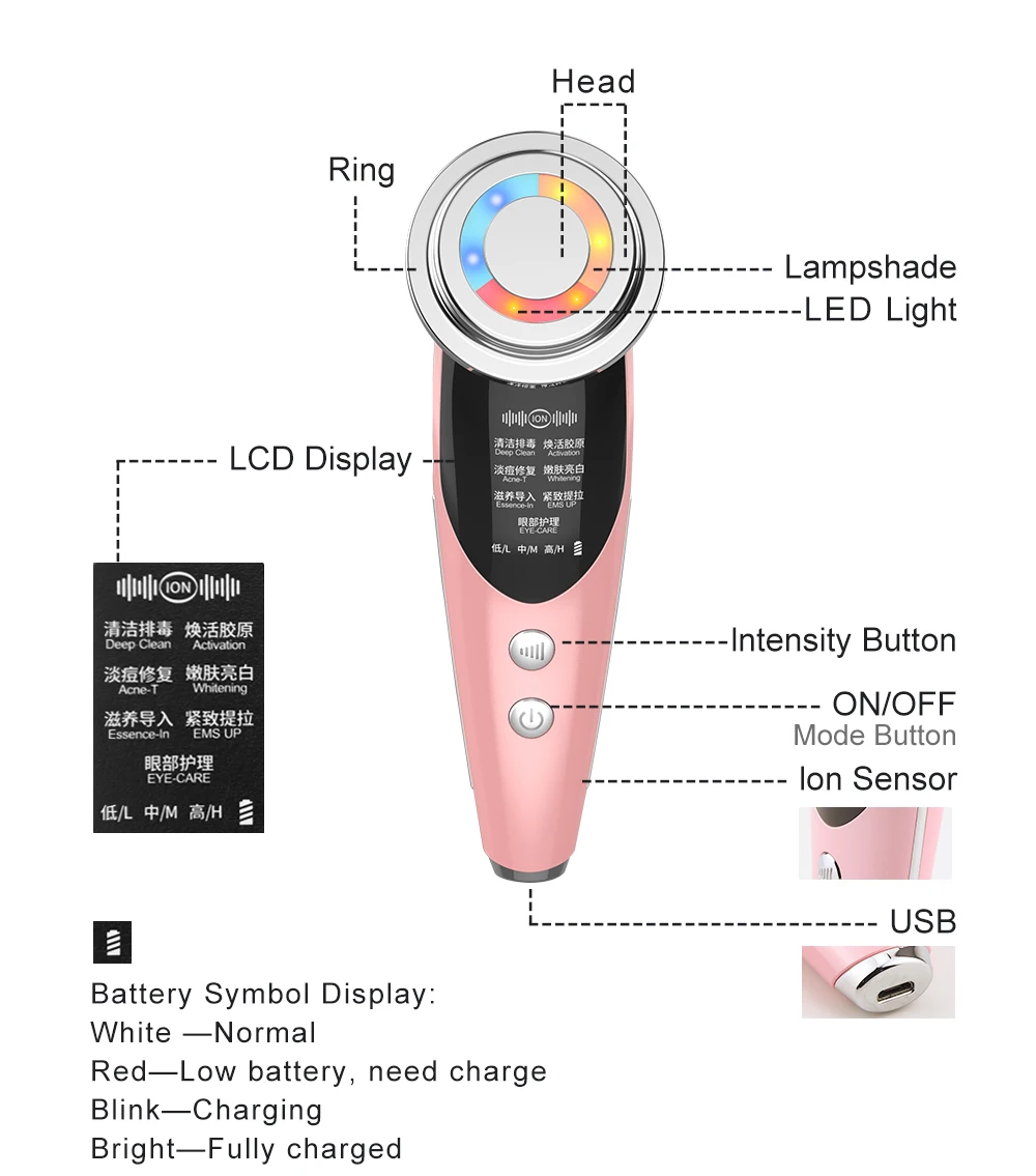 Устройство для массажа лица со светодиодсветильник кой и функцией мезотерапии