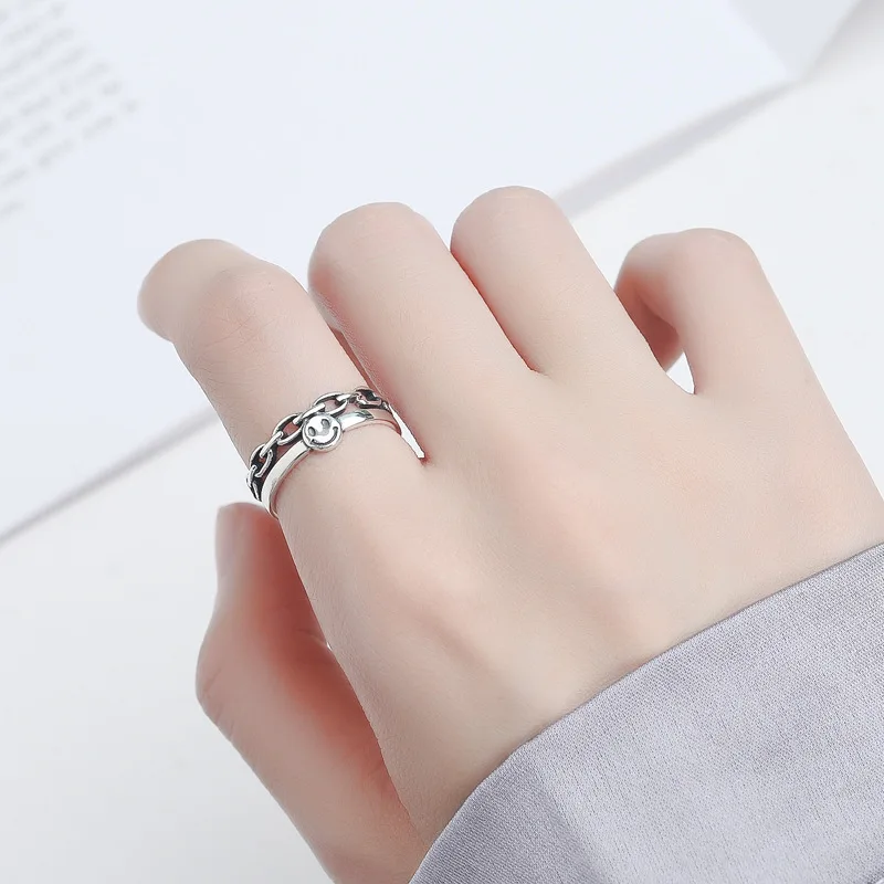 Кольца в винтажном стиле, цепочка со смайликом, открытые одиночные ...