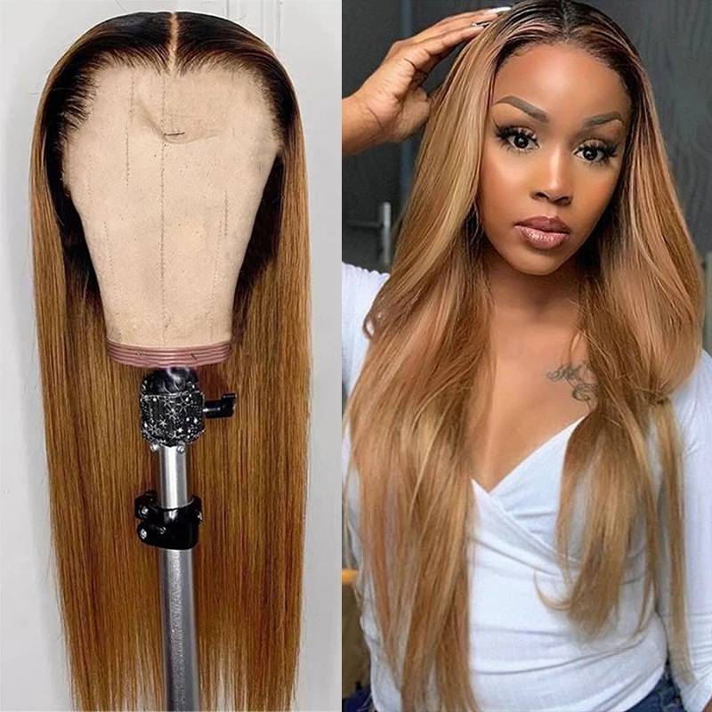 1B27 светлые человеческие волосы с эффектом омбре, T-образные парики на сетке, прямые передние парики из человеческих волос на сетке, натуральные черные человеческие волосы, передние парики на сетке 180%