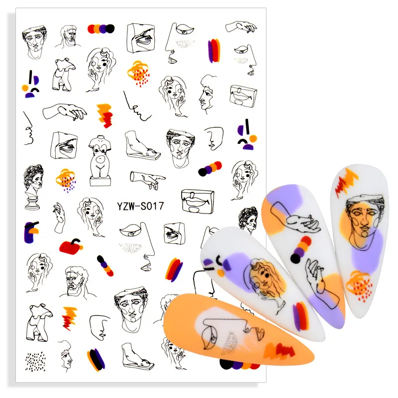 Абстрактные наклейки для ногтей с изображением лица леди, слайдеры ...