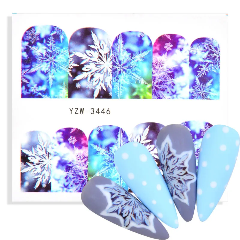 Рождественские Зимние Водные Наклейки для ногтей рождественские Мул...