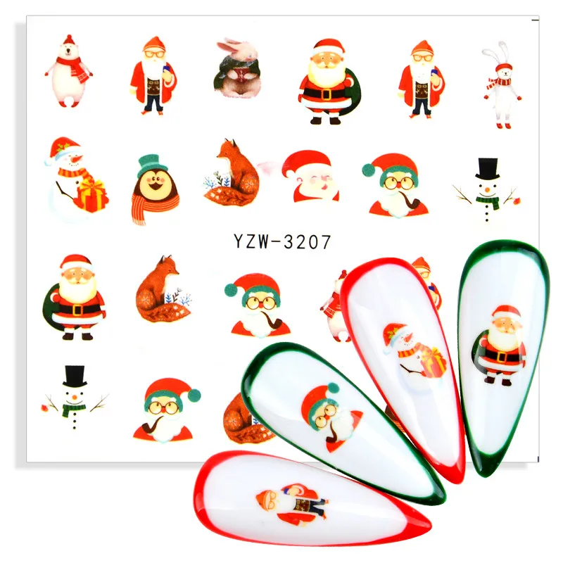 1 шт. Мультяшные Рождественские Водные Наклейки для ногтей Санта Сн...