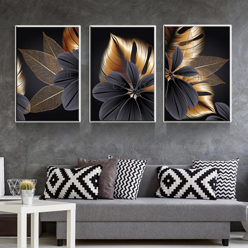 Скандинавская абстрактная картина маслом с изображением листьев растений, плакат с золотым и желтым принтом, настенная Картина на холсте, современная картина, украшение