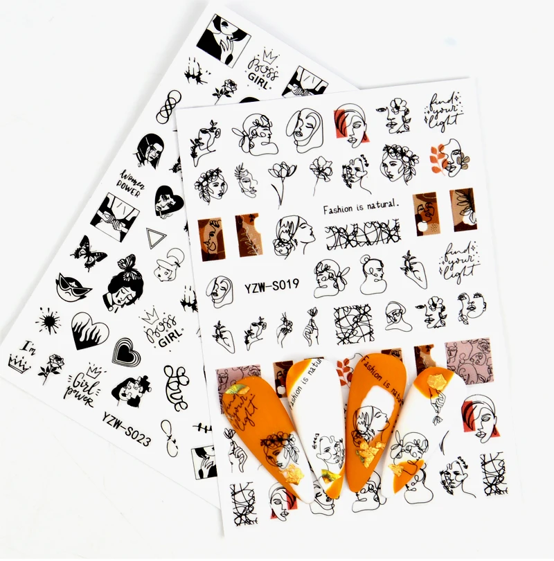3D слайдер для ногтей, буквы, снежинки, абстрактный дизайн лица, водяной знак, наклейки, самоклеящиеся Типсы для маникюра, дизайн ногтей декоративные наклейки