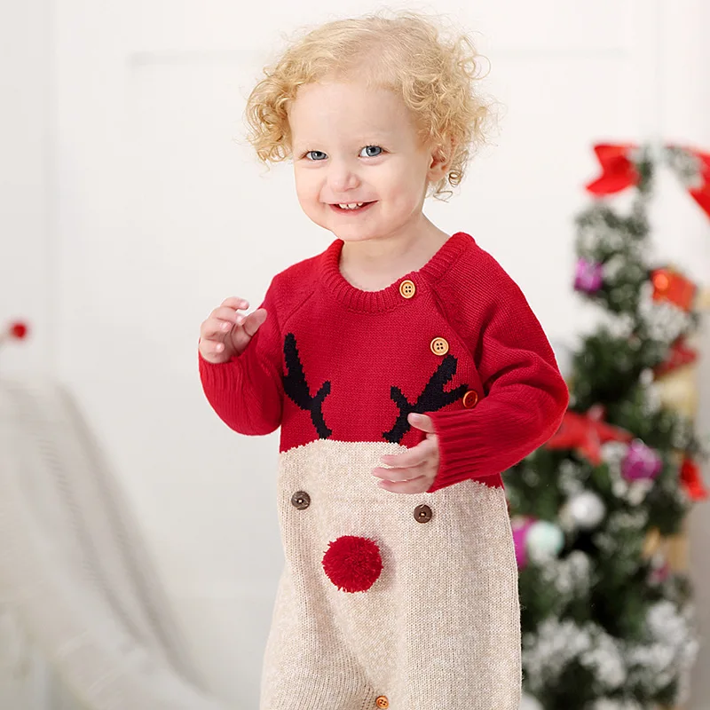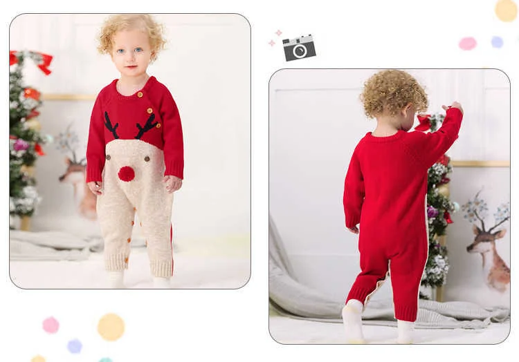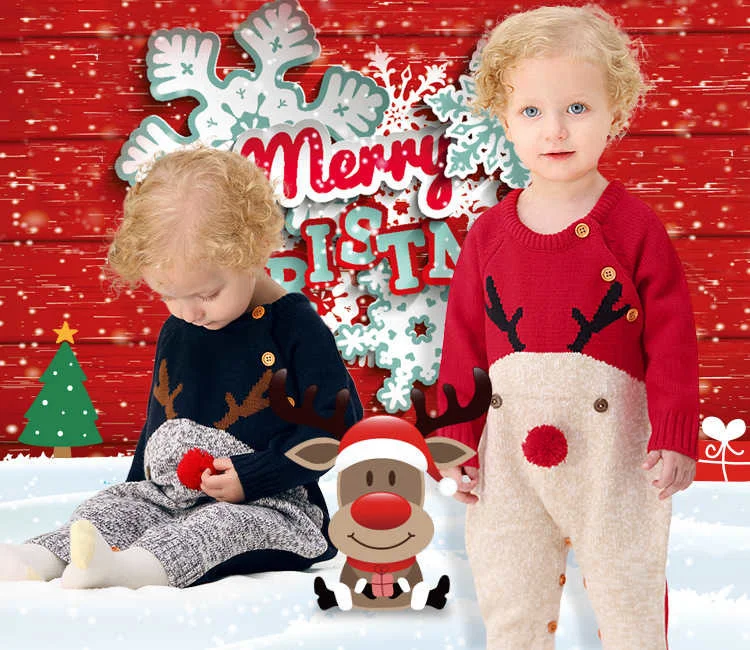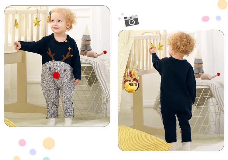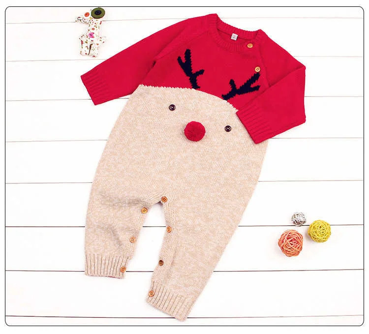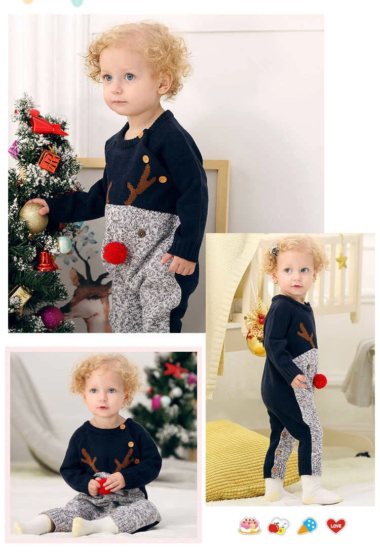 Рождественские Комбинезоны для маленьких мальчиков; Вязаные детские комбинезоны с оленем; Новогодний костюм для маленьких девочек; Детская теплая шерстяная одежда; От 0 до 2 лет