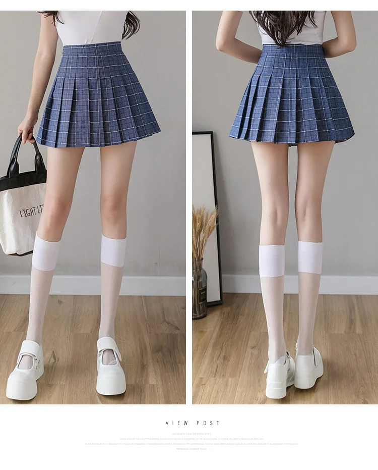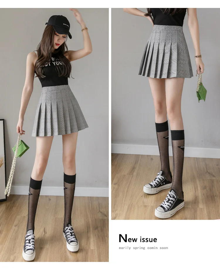 Клетчатая Летняя женская юбка HU 2021, Прошитые студенческие плисси...