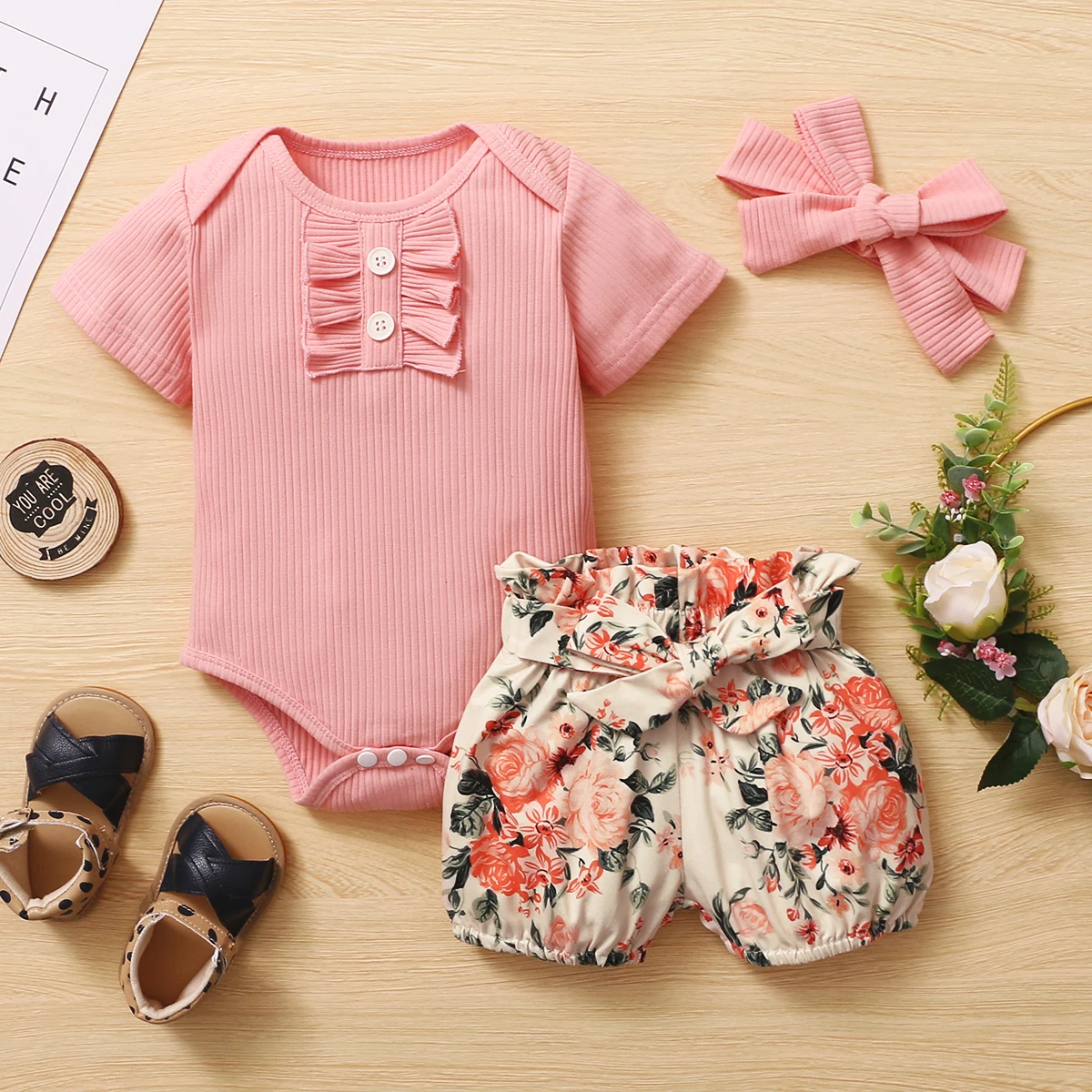 Комбинезон для девочек 0-18 месяцев, трикотажный, с оборками, длинными рукавами и повязкой на голову