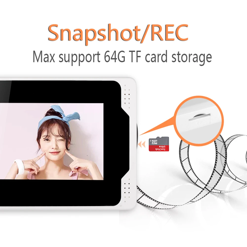 [1] 7-дюймовый TFT-монитор с тонким дизайном, управление сенсорной клавишей, без использования рук, поддержка Wi-Fi подключения к Интернету. [2] наружный дверной звонок с водонепроницаемой крышкой, встроенным инфракрасным датчиком и камерой 1080P, широким углом обзора 110 градусов. [3] ночное видение, защита от дождя, пыли и вандалов. К нему можно подключить весь электронный замок. [4] HD-камера с разрешением 1080P/1.0 МП, просматривает более четкое HD CMOS с высоким разрешением, смотрите более резкое и подробное, чем Аналоговое видео CVBS. [5] Когда кто-то звонит в дверной звонок, монитор, вставленный с SD-картой, будет автоматически записывать изображение или видео. Поддержка SD-карты, вы можете настроить режим записи на видео. При заполнении SD-карты самое раннее записанное видео будет удалено автоматически. SD-карта не входит в комплект.