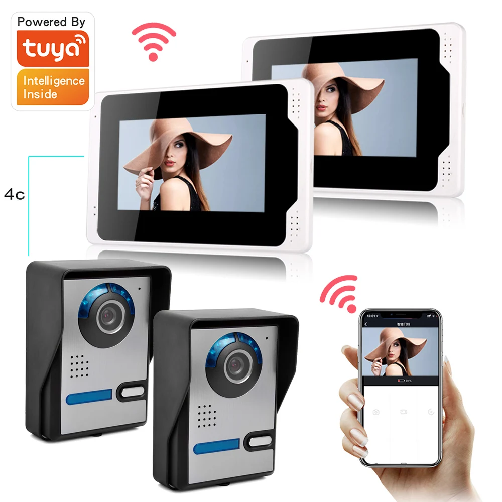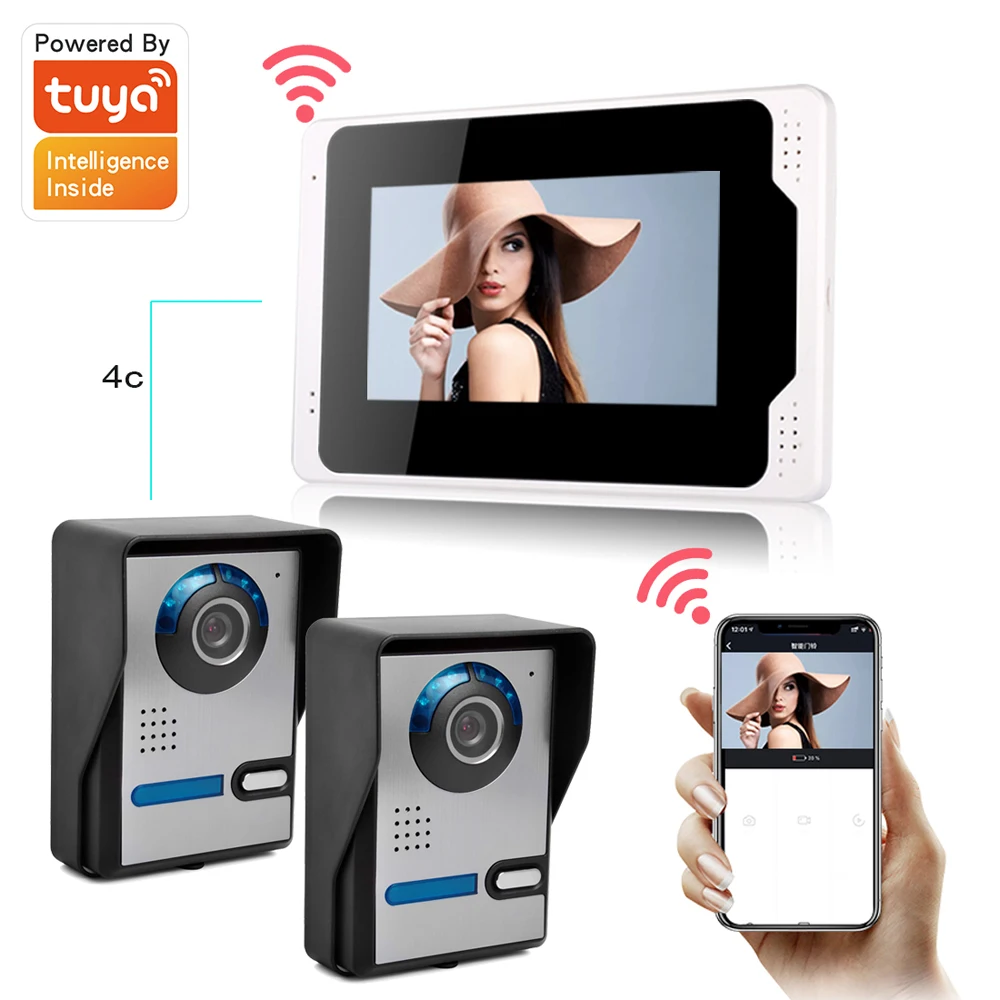 Видеодомофон с поддержкой Wi-Fi, Водонепроницаемый дверной звонок с тремя мониторами, управление через приложение Tuya, 6 языков