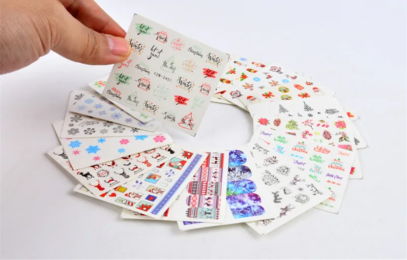 Наклейки для ногтей с водяным знаком, рождественские наклейки с изо...
