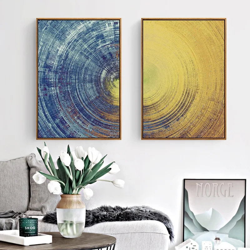Абстрактная Картина на холсте с синим и белым кругом, постер, Настенная картина, Современное украшение для гостиной