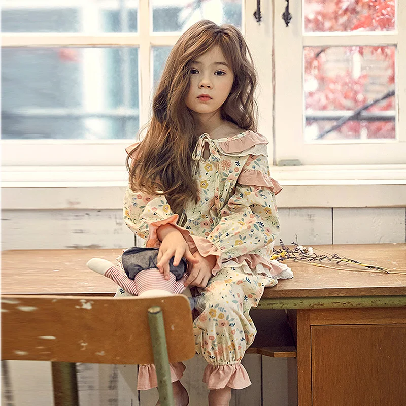 Новые детские хлопковые Пижамные комплекты Лолиты с цветочным рисунком для девочек. Винтажный детский пижамный комплект с цветочным рисунком, одежда для сна. Детская одежда