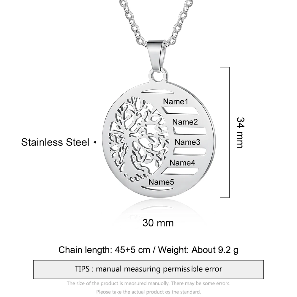 Подвеска из нержавеющей стали с именем на заказ, с изображением Древа Жизни