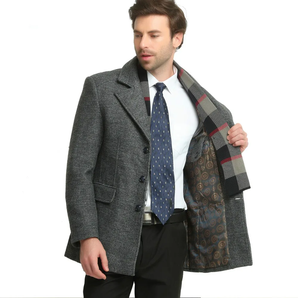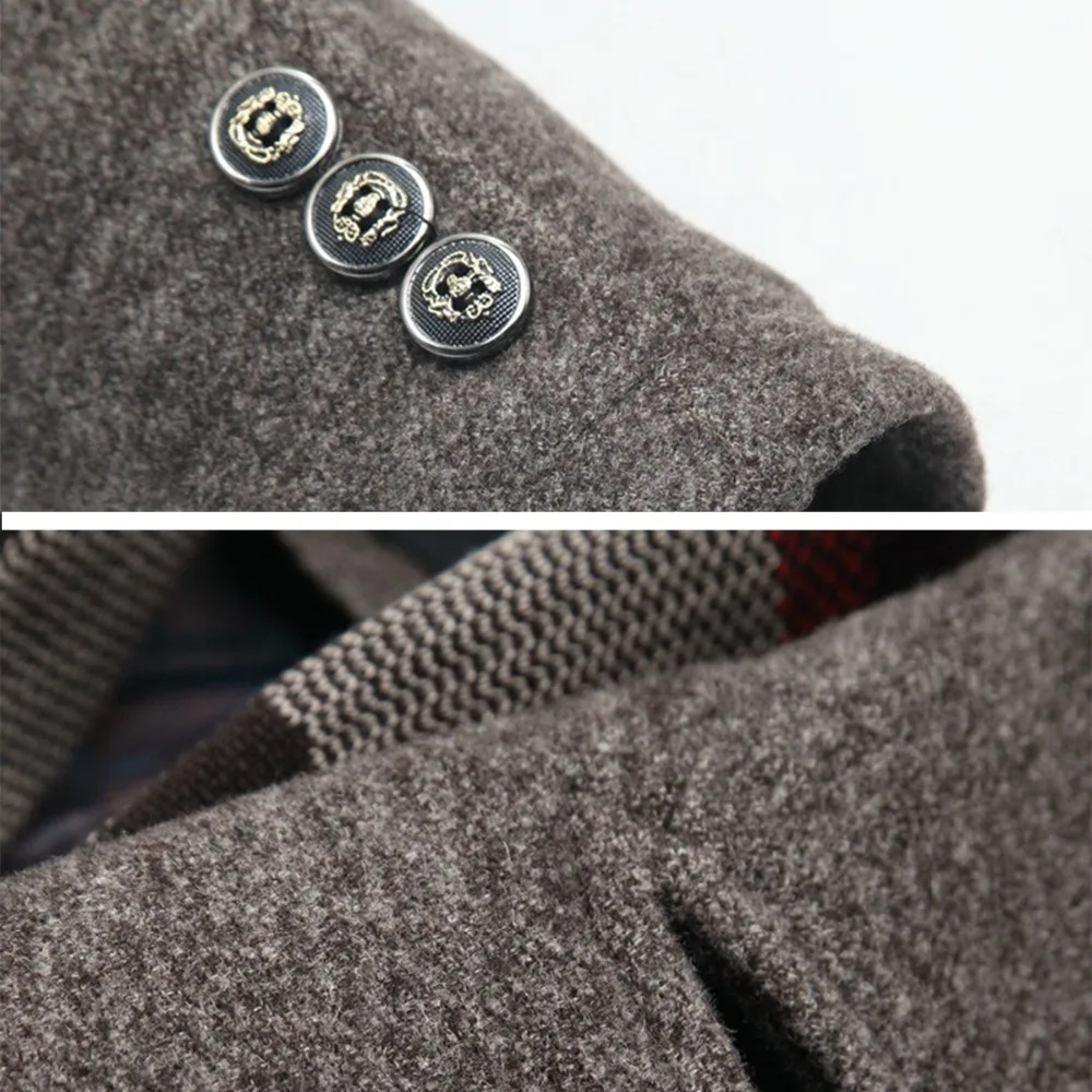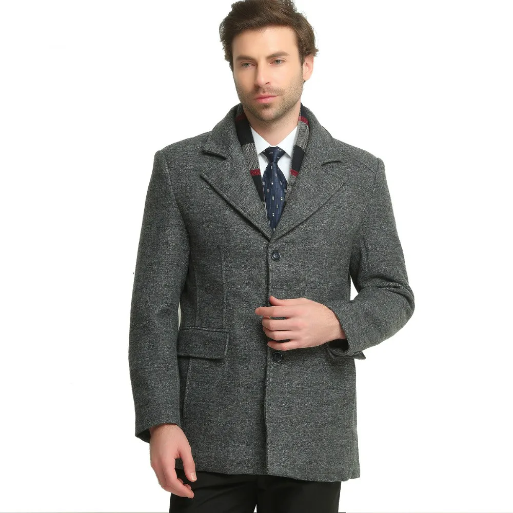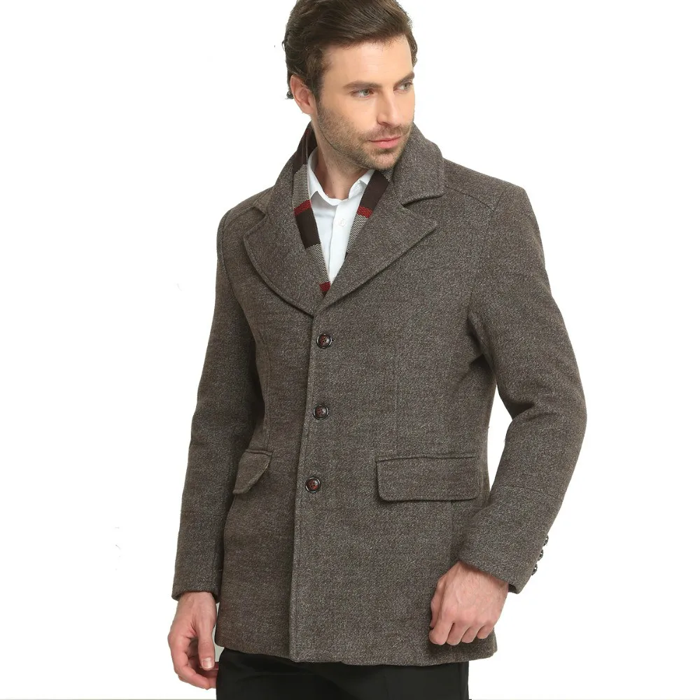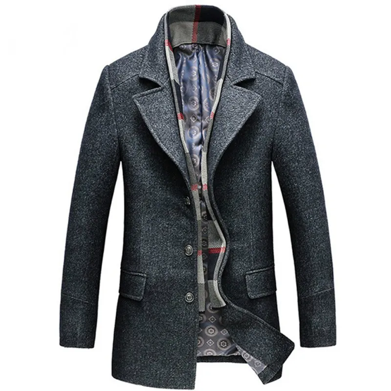Мужское шерстяное пальто, повседневные плотные теплые куртки на одной пуговице, мужская верхняя одежда, однотонные кофейные, серые