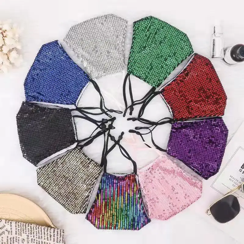 Рождество, блестками, пайетками, маска для лица для женщин модные многоразовые моющиеся блестящая Подвеска мешок для пыли из маски для лица крышка, способный преодолевать Броды для взрослых