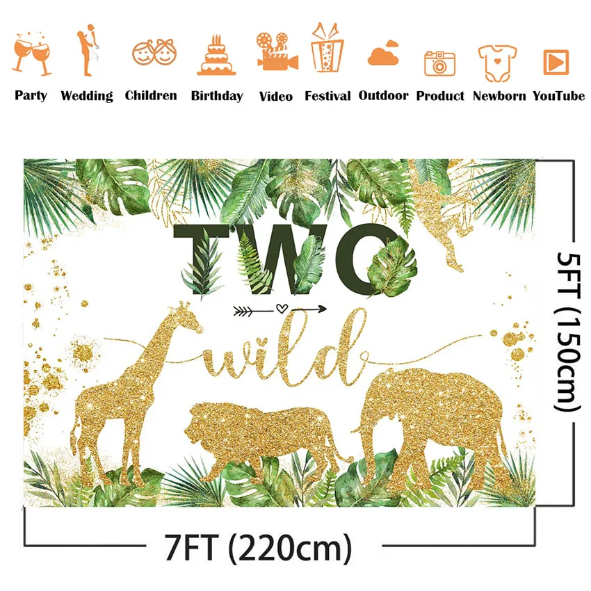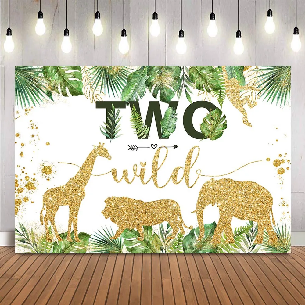 Два диких дня рождения фон украшение розовые цветы джунгли золотые ...