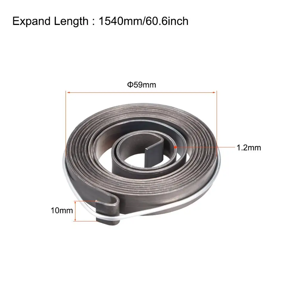 Тип Толщина материала Ширина материала Пружина OD Увеличить длину (около) Внутренний Тип крепления Внешний тип крепления Размер 1 0,8 мм 8 мм 49 мм 1540 мм/60,6 дюйма Крюк Крюк Размер 2 1,2 мм 10 мм 59 мм 1540 мм/60,6 дюйма Крюк Крюк Размер 3 1,6 мм 10 мм 58 мм 1540 мм/60,6 дюйма Крюк Крюк Размер 4 0,8 мм 10 мм 54 мм 1540 мм/60,6 дюйма Крюк Крюк Размер 5 0,7 мм 16 мм 59 мм 1800 мм/70,9 дюйма Крюк Кольцо Размер 6 0,7 мм 19 мм 63 мм 1800 мм/70,9 дюйма Цилиндрическое отверстие Кольцо Размер 7 0,7 мм 12 мм 49 мм 1540 мм/60,6 дюйма Крюк КольцоОписание: