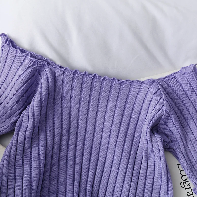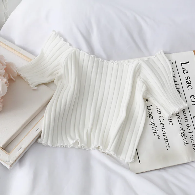 Женская футболка с открытыми плечами, вязаные кроп-топы, женские мо...