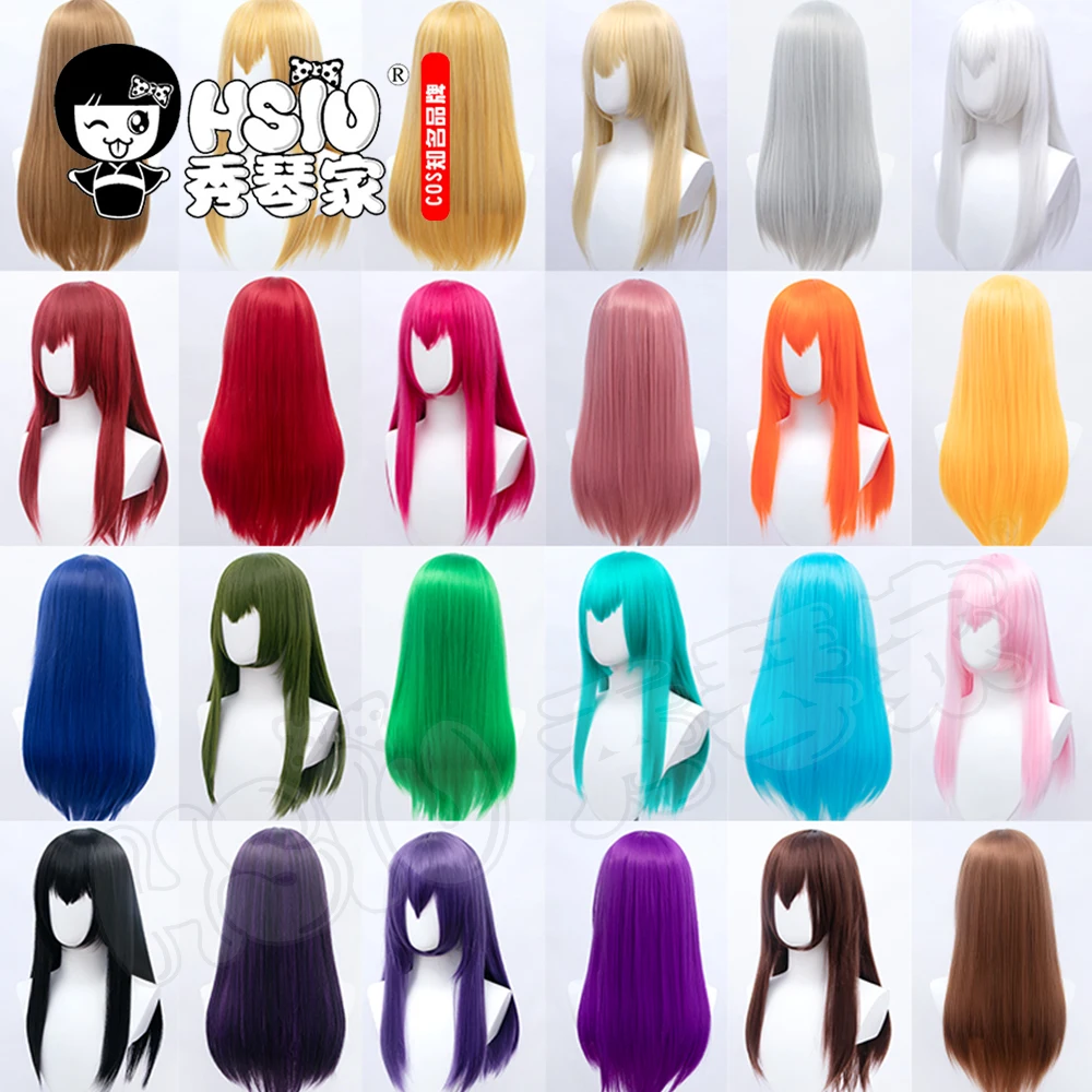 HSIU, 26 цветов, 60 см, длинные прямые волосы, розовый, серый, белый, фиолетовый, черный, розовый + бесплатная Фирменная сетка для волос, разноцветные парики для косплея
