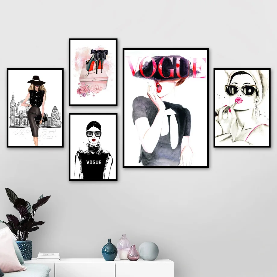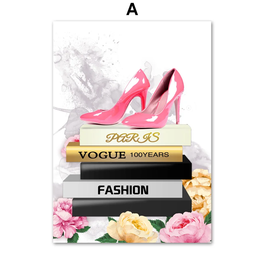 Картина на холсте с изображением Парижа, губная помада на высоких каблуках, скандинавские плакаты и принты для декора гостиной