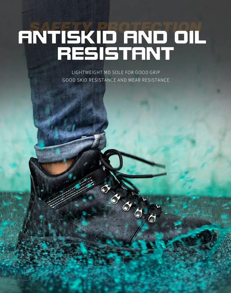 Кожаные защитные ботинки с высоким верхом, удобные, устойчивые к пр...