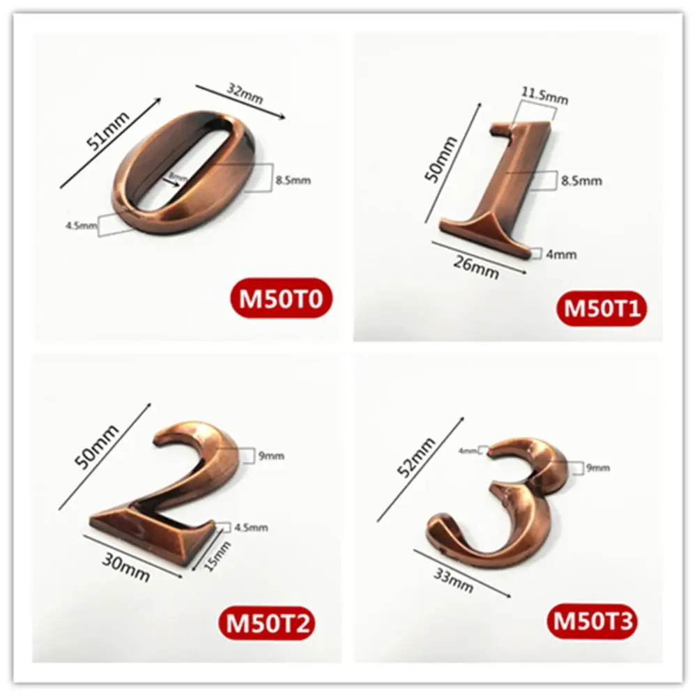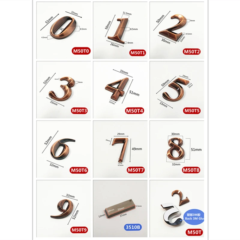 Наклейка из АБС-пластика с 3 цифрами, имитация металла, бронзы, дома с номером от 100 до 299, наклейка с индивидуальным знаком, наклейка на дверь для гостиницы, квартиры