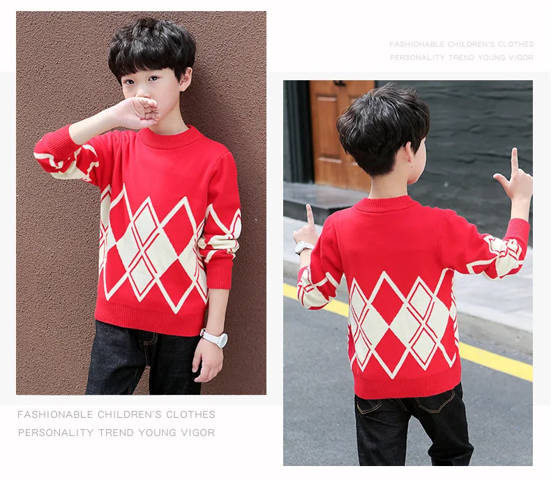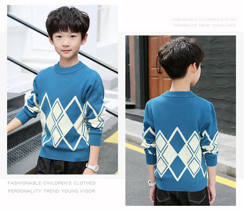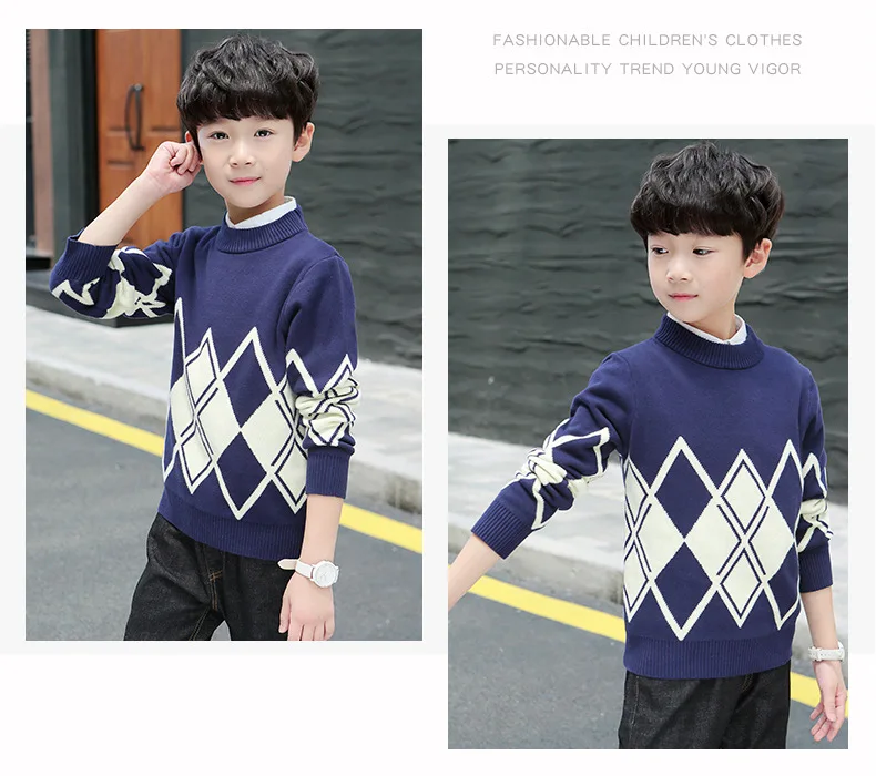 Модная хлопковая одежда, Детский свитер, сохраняющий тепло зимний свитер с круглым вырезом, пуловер для мальчиков, вязаный свитер, детская одежда