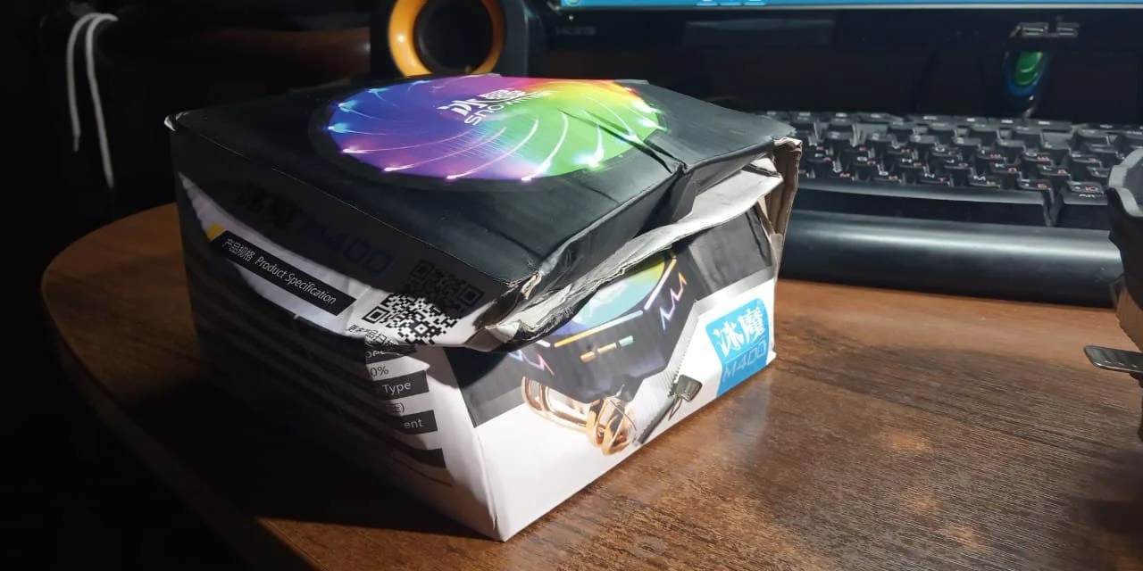 Приехал всего за десять дней, я даже удивился. Коробка дополнительно упакована в какую-то надувную штуку, напоминающую водяной матрас (и не зря, потому что даже в ней по пути умудрились помять коробке углы). Работоспособность проверил: вертушка работает, подсветка тоже. Подсветка кстати весьма яркая, даже днём. Эффективность непосредственно в качестве охлаждения пока не проверял, и до конца апреля скорее всего не удастся - брал наперёд. Если не забуду - дополню отзыв на эту тему после тестирования.