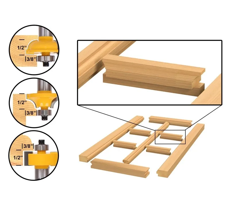 Фрезы для стеклянных дверей CHWJW с хвостовиком 12 мм, 3 шт., Набор круглых бусин с режущий шип фрезами для деревообрабатывающих инструментов