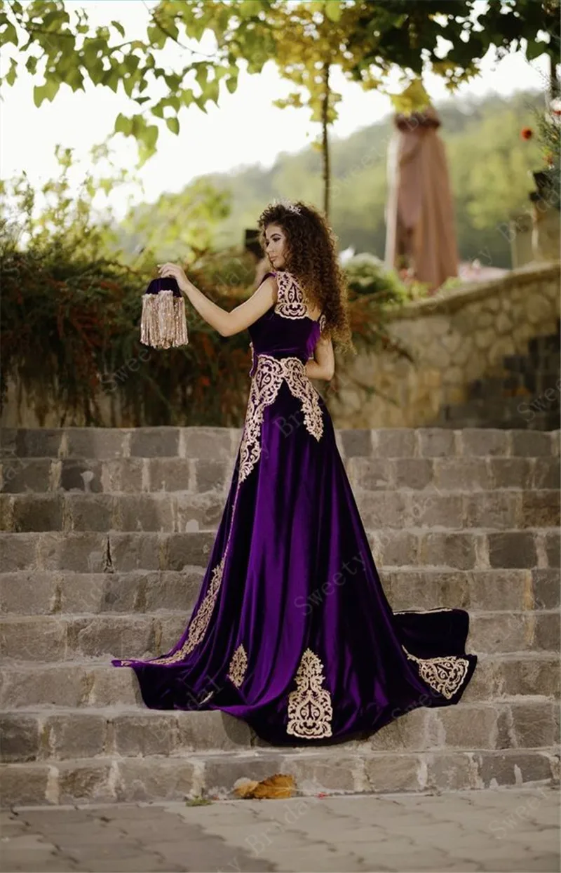 Роскошные фиолетовые Вечерние платья с юбкой-годе Дубая, алжирские платья с золотистой аппликацией, кружевные платья Халка для выпускного вечера, мусульманское официальное платье для вечеринки, 2021