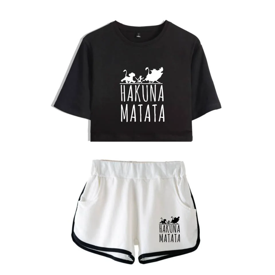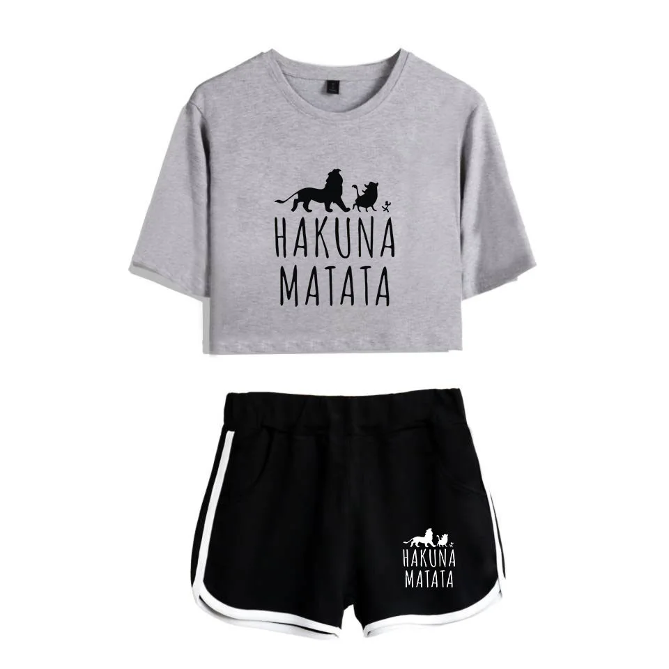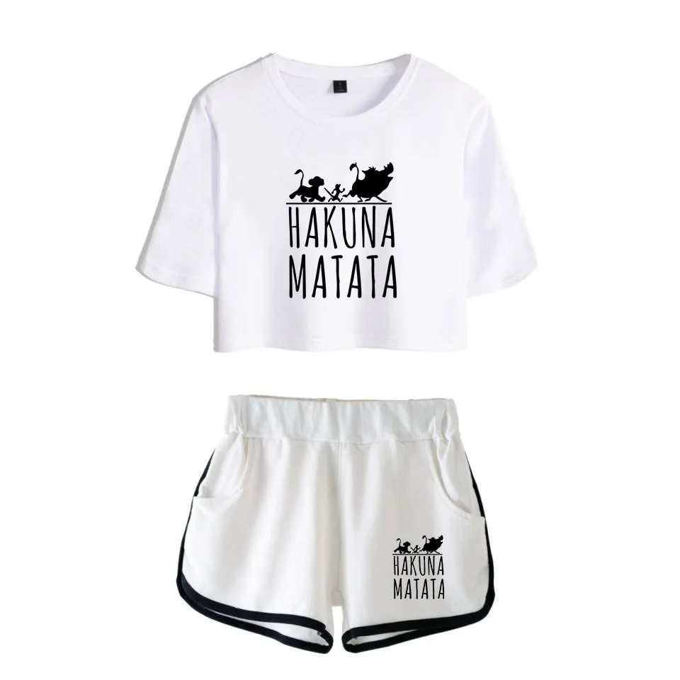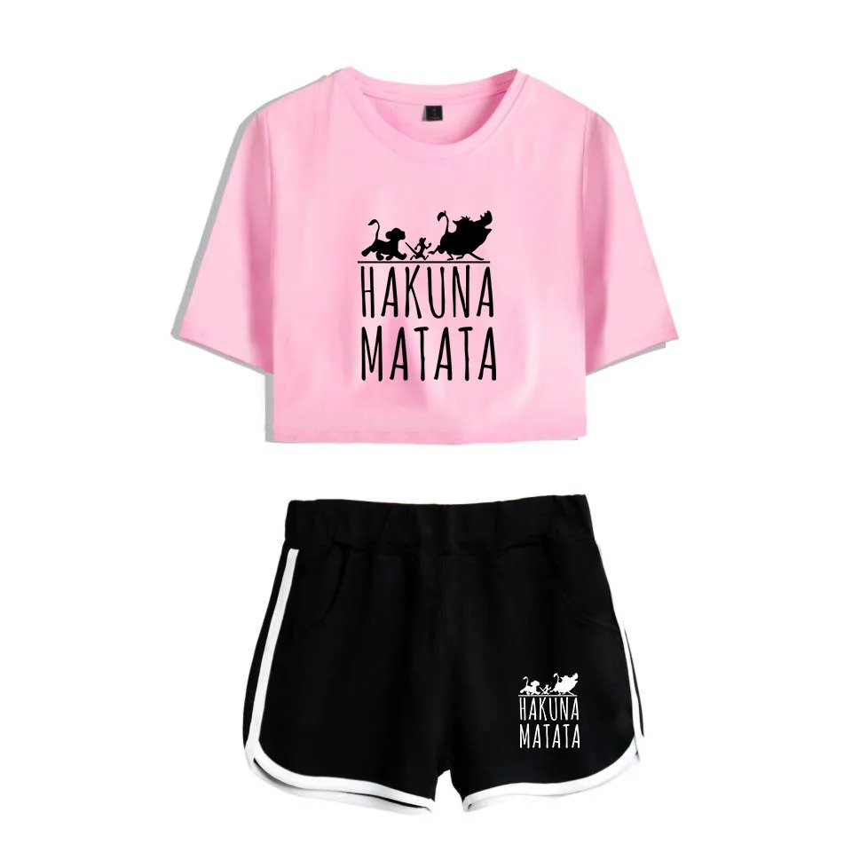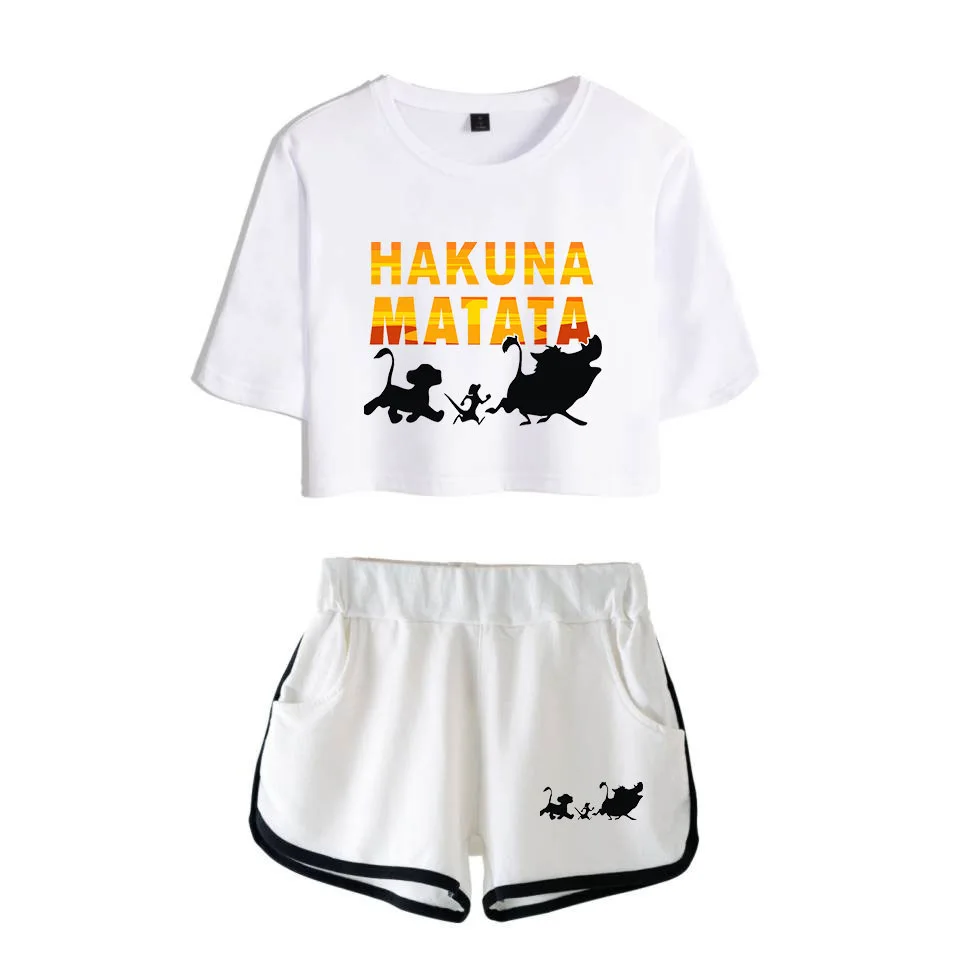 Женский костюм-двойка The Lion King Hakuna Matata, повседневная сексуальная футболка и шорты для девушек, женская одежда