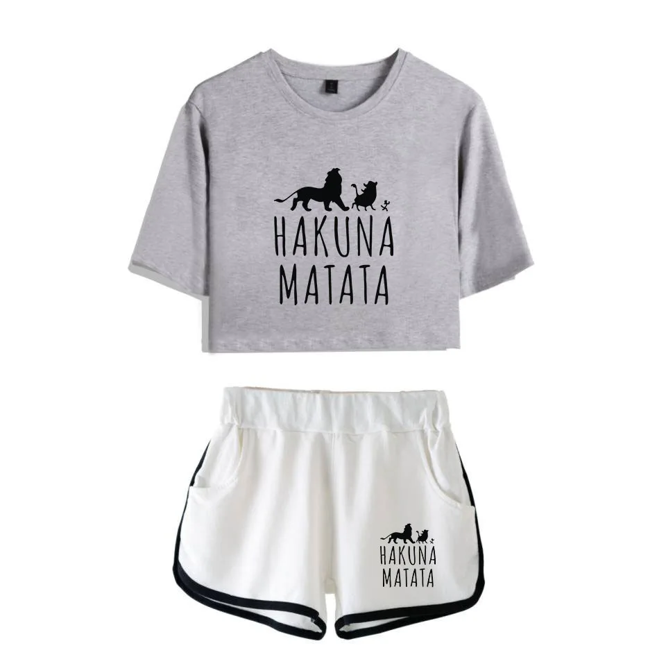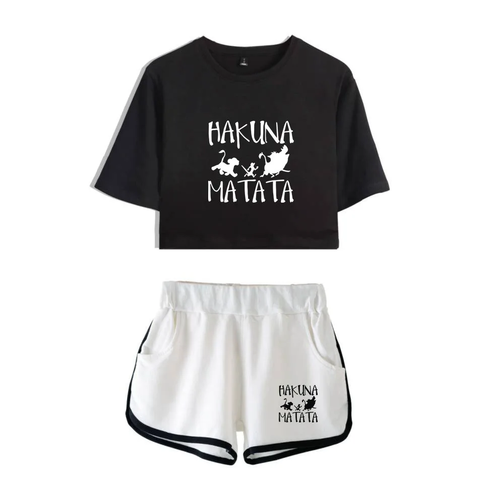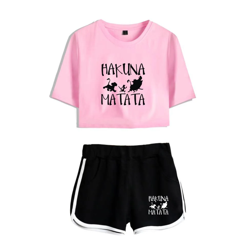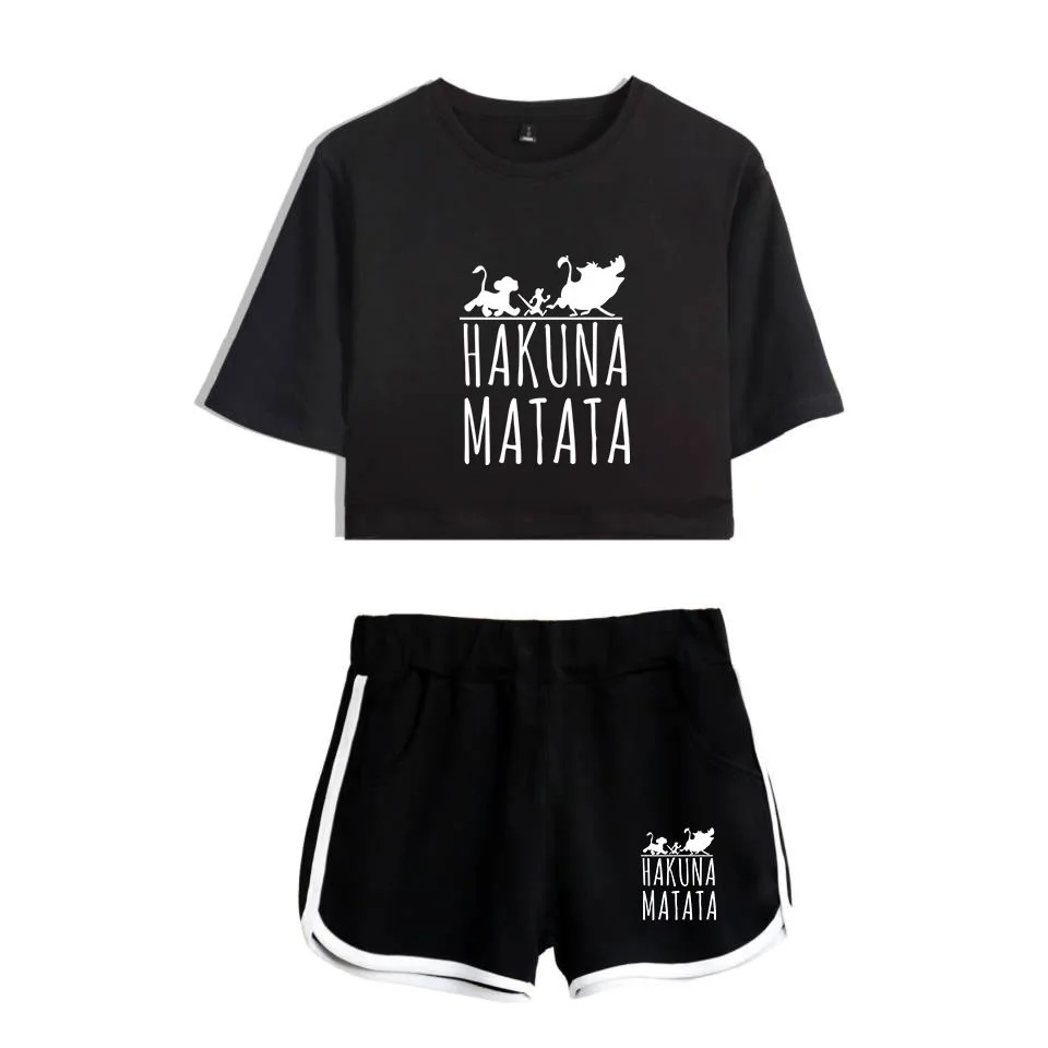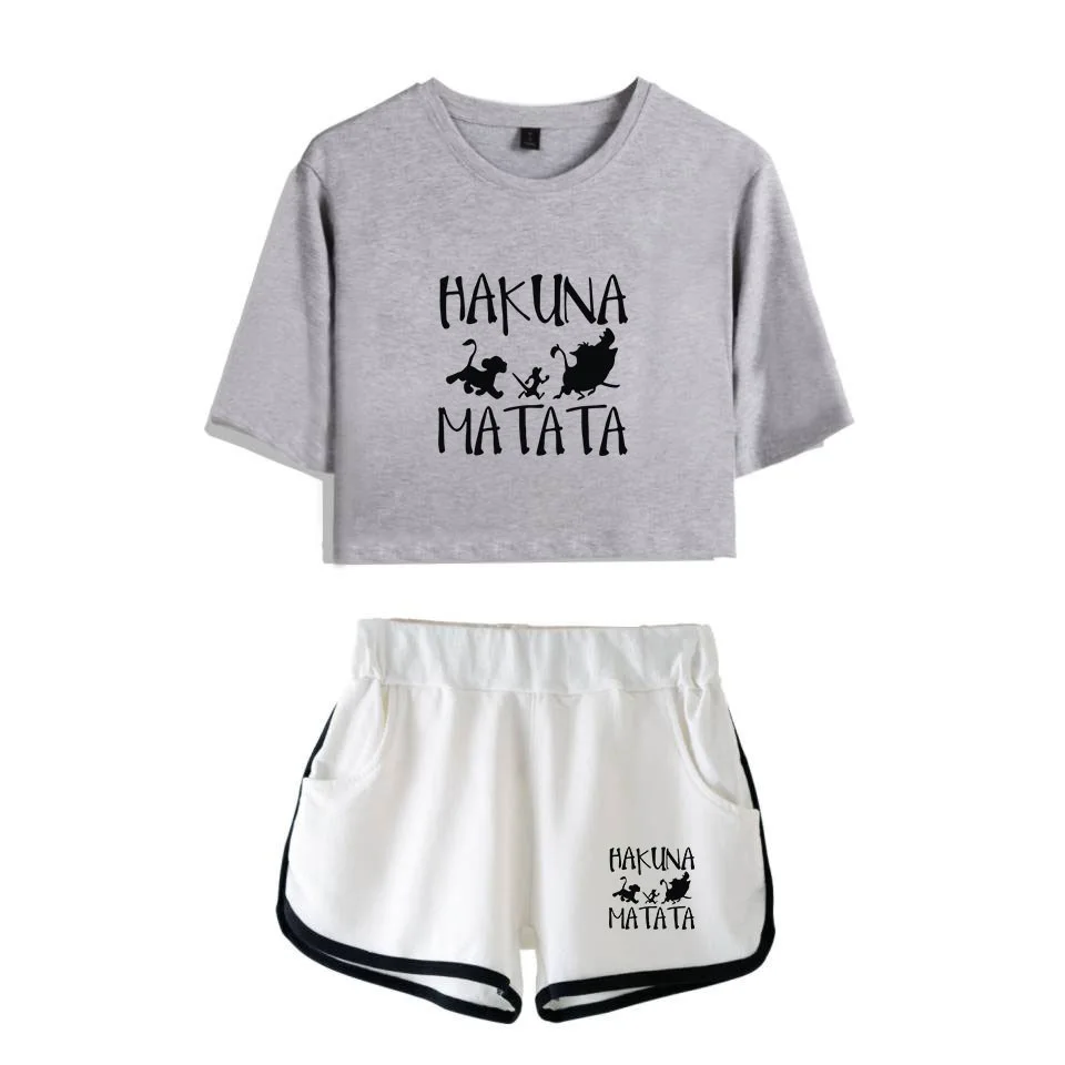 Женский костюм-двойка The Lion King Hakuna Matata, повседневная сексуальная футболка и шорты для девушек, женская одежда