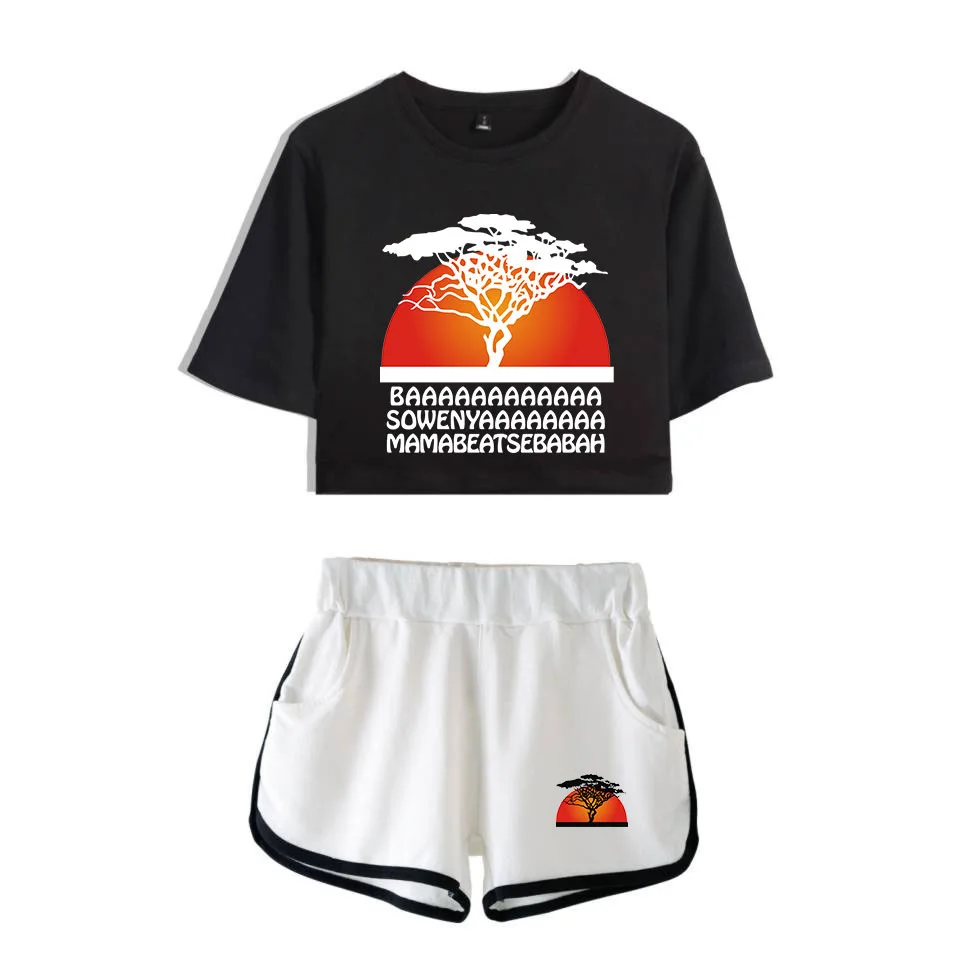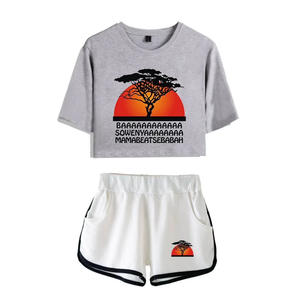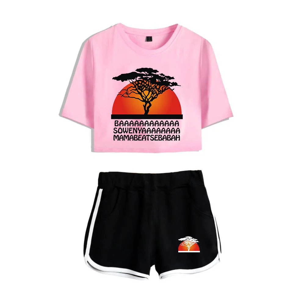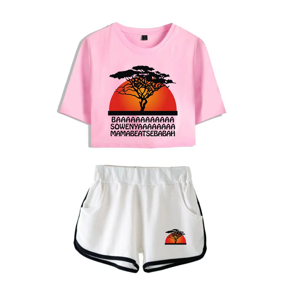 2 Piece Set WomenExposed Navel T Shirt+Shorts Pants