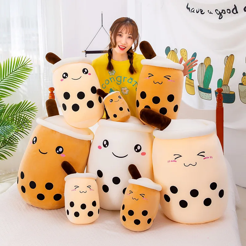 Плюшевая игрушка Boba в виде чайной чашки, подушка в виде пузырька для чая, милая плюшевая подушка в виде фруктов и напитков, мягкое яблоко, розовая клубника, молочный чай, детский подарок