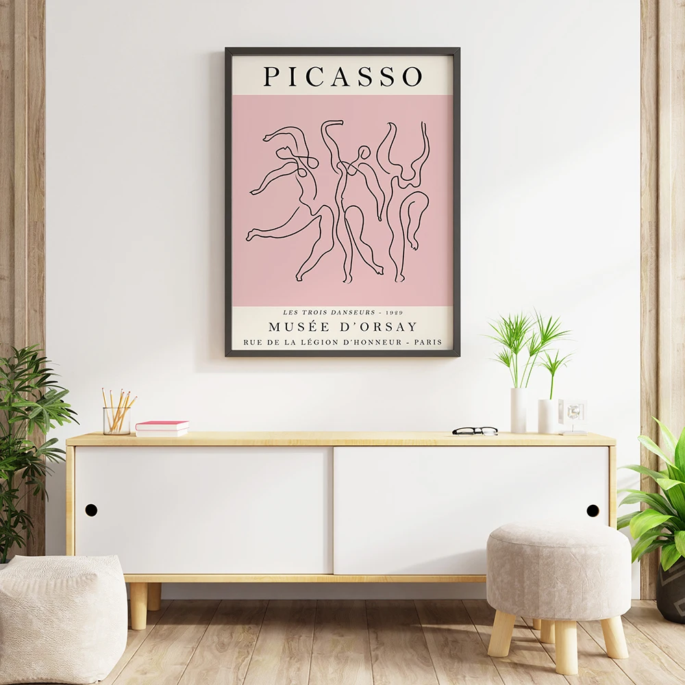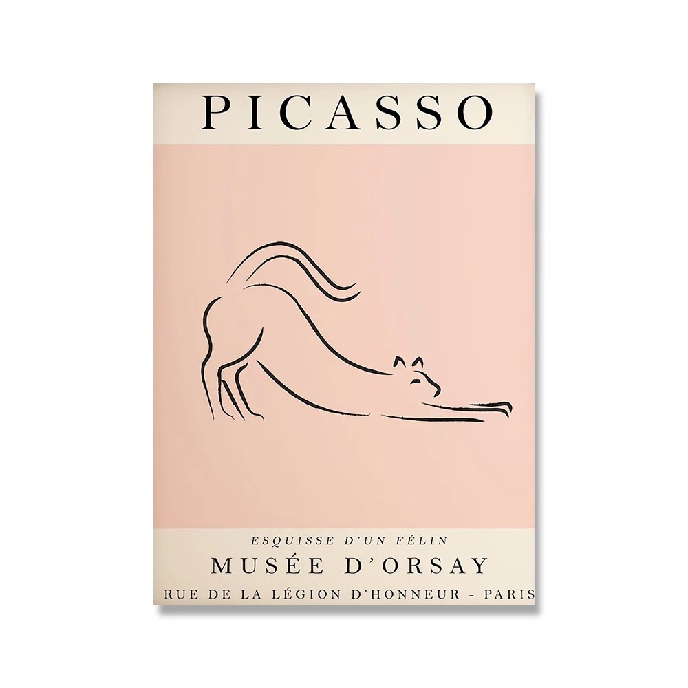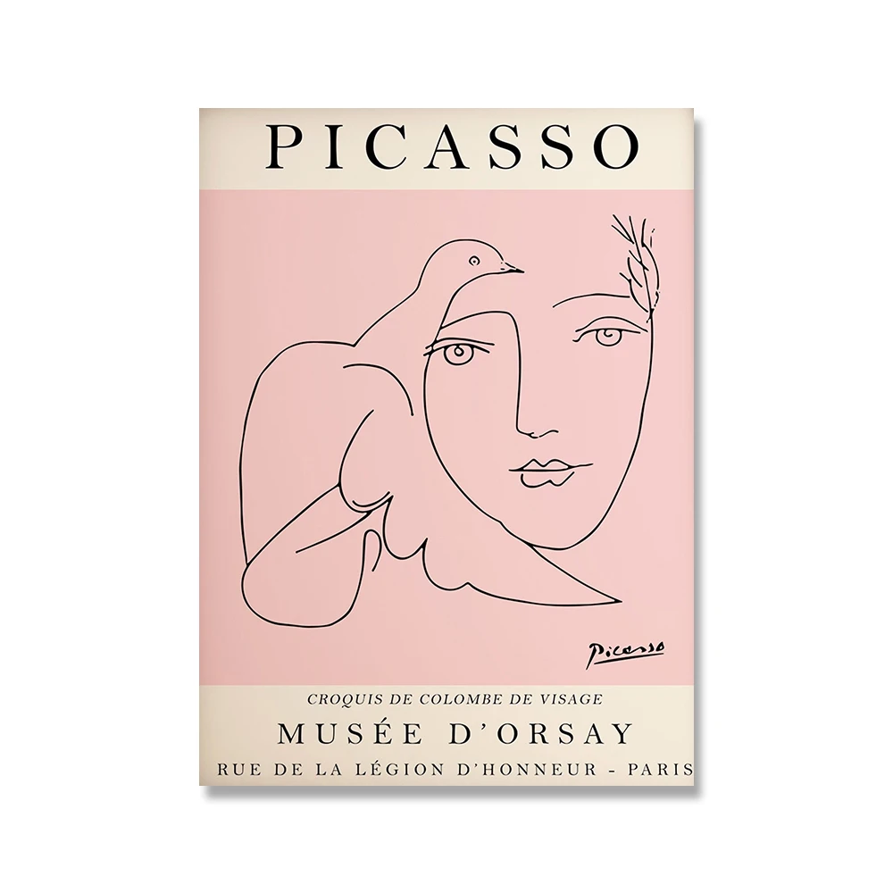 Линейное искусство Пикассо, выставочная Картина на холсте, абстрактное розовое лицо, птица, кошка, плакаты, танцевальное настенное искусство, картины для декора гостиной