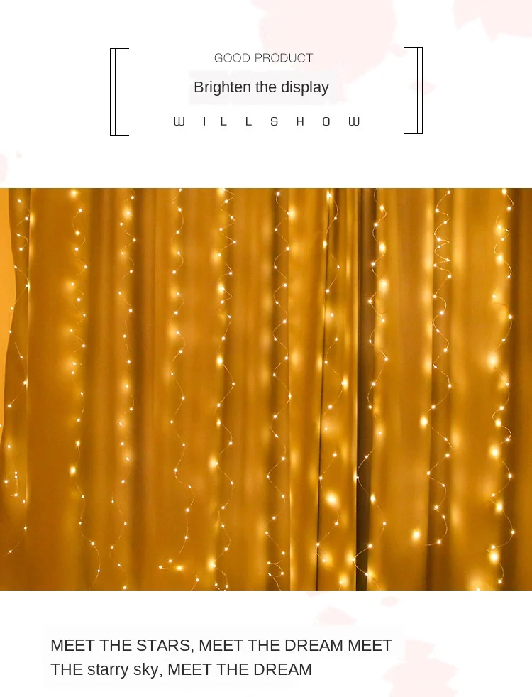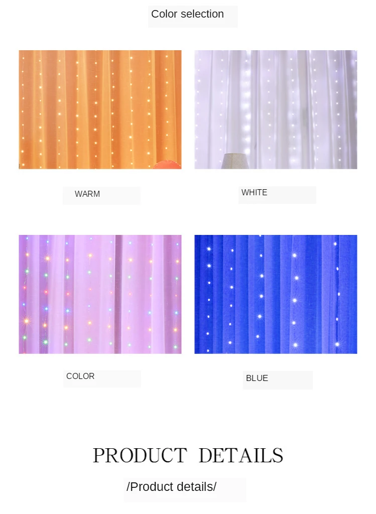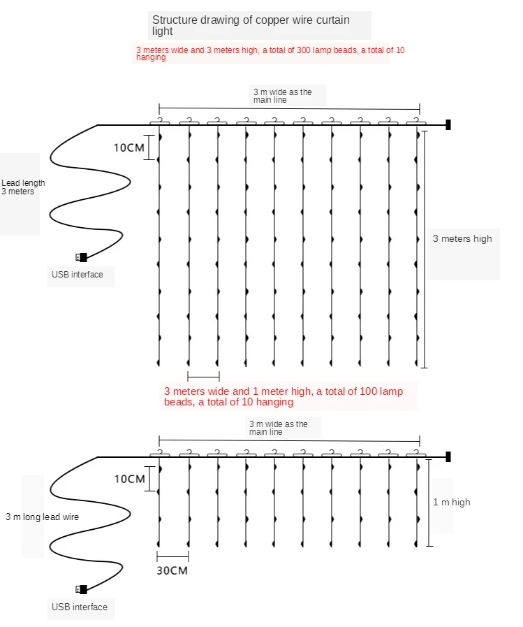 Package Contents3*3m 300LED/3*2m 200LED/3*1m 100LED