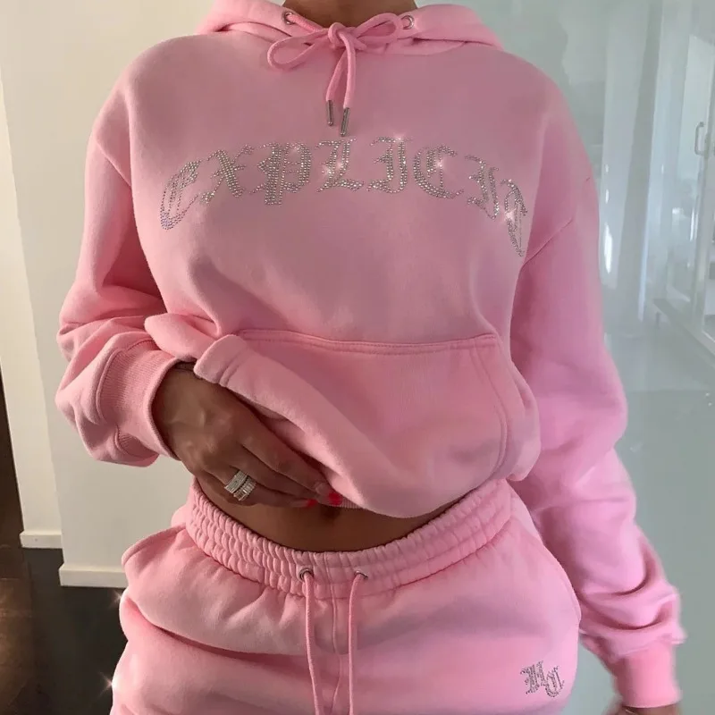 Спортивный костюм YICIYA для женщин, комплект из 2 предметов, розовый зимний костюм из двух предметов с брюками, свитшот и Джоггеры для бега, для женщин, 2022